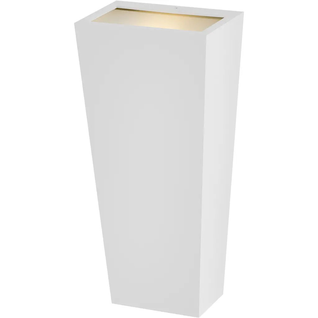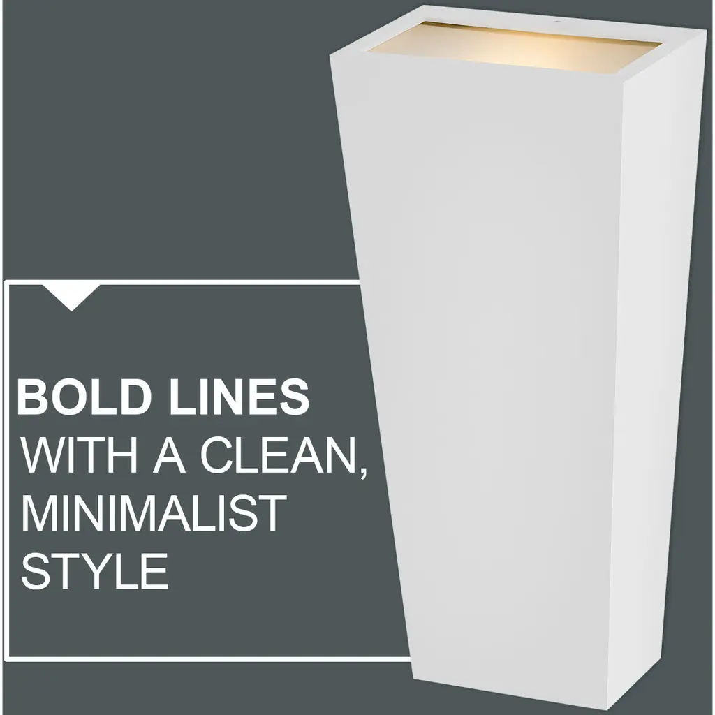 The Coastal Elements Collection offers versatile designs, constructed of composite materials and coated with anti-fading finishes, for maximum durability in harsh climates. Cruz catches the eye with its modern, sleek design and trapezoidal silhouette. Cruz emits a beautiful wall wash illumination through the etched glass to enhance modern facades. Mounting versatility allows individuals to display either the small or large side up or down. LED bulb is included.