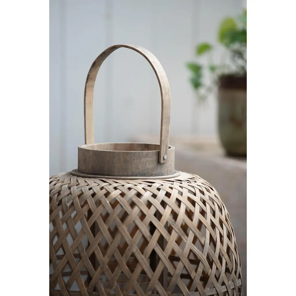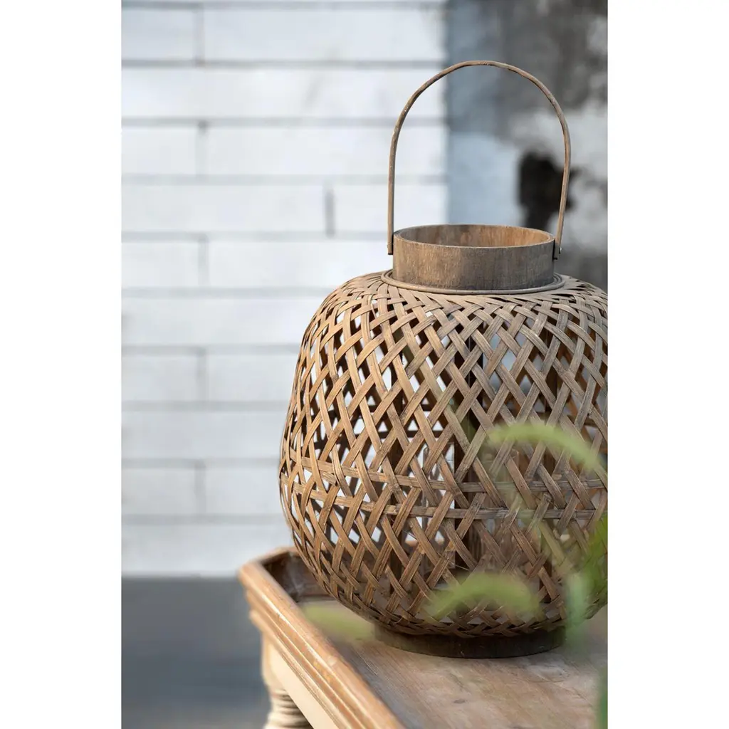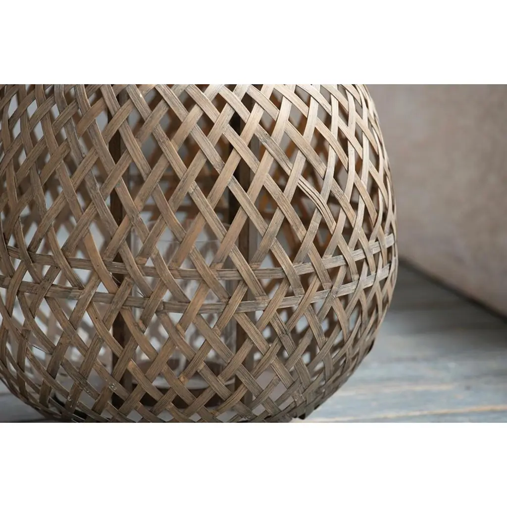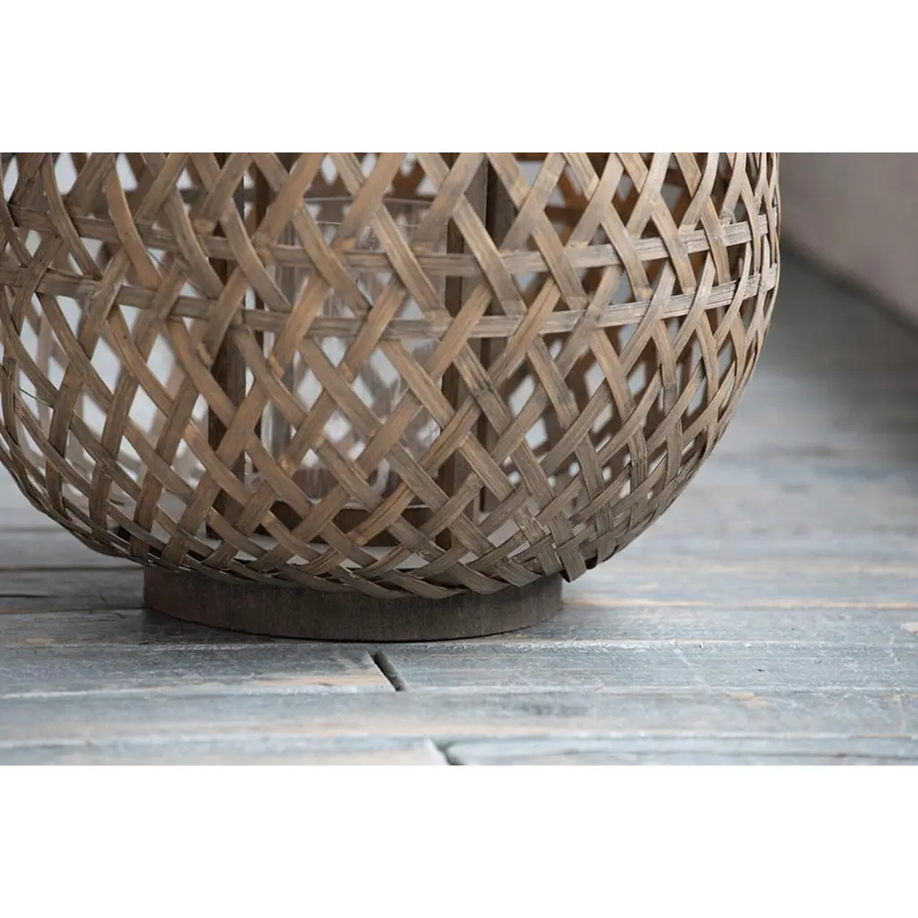 The Coconio Wood Lattice Lantern boasts a natural aesthetic sure to enhance any garden party. This piece is crafted from smooth wood strips woven into an oval shape for sculptural appeal. A small glass Candle Holder sits in the center, perfect for LED candles. This lantern serves as a lovely decorative accent even when not in use.