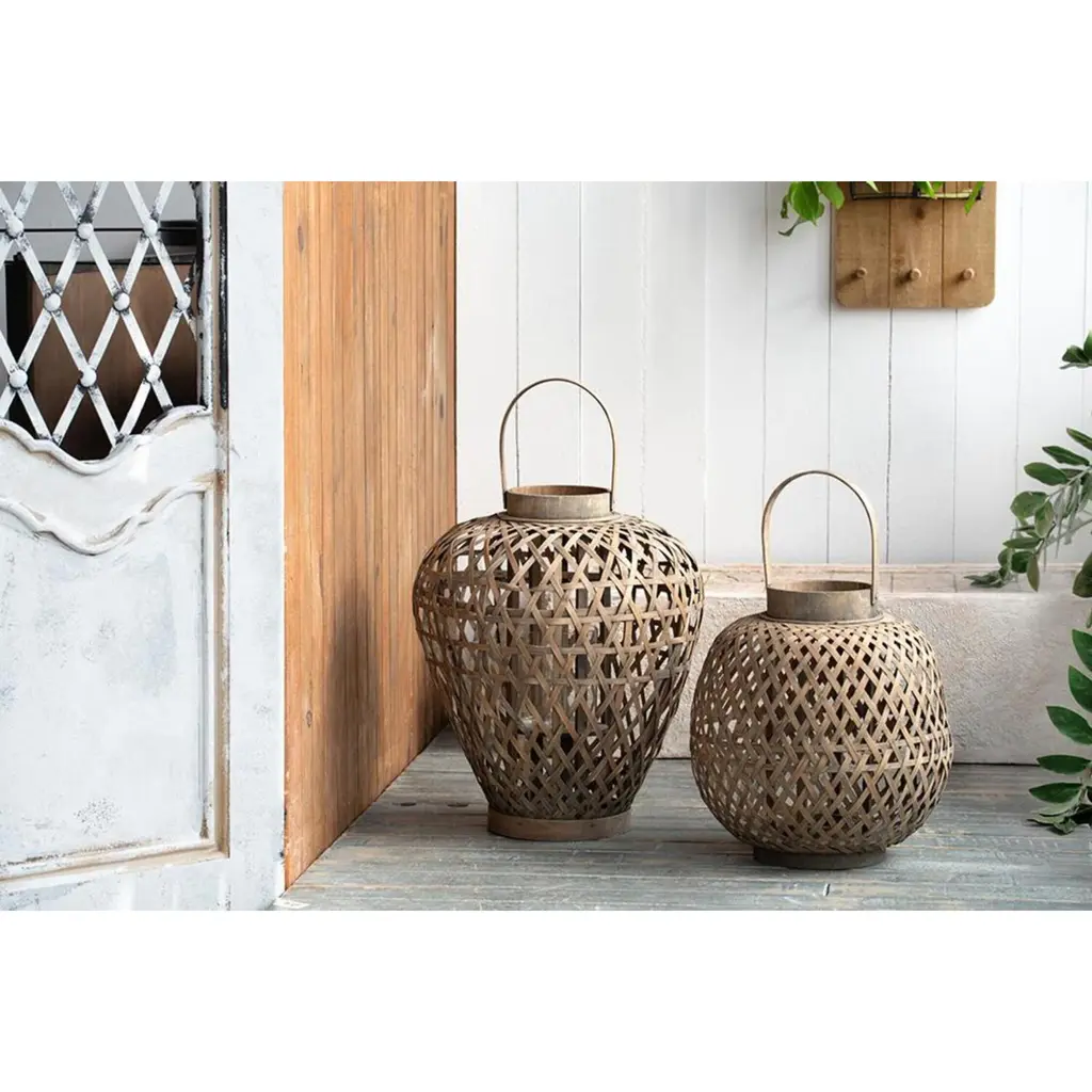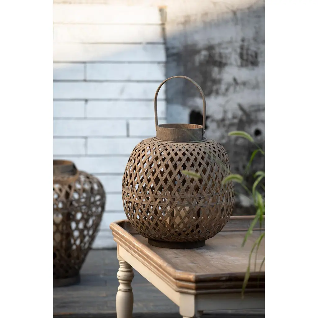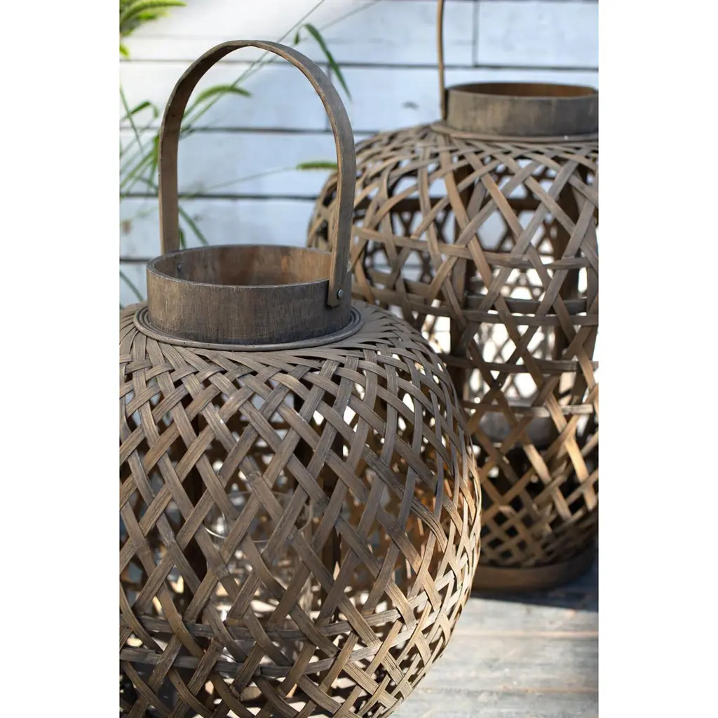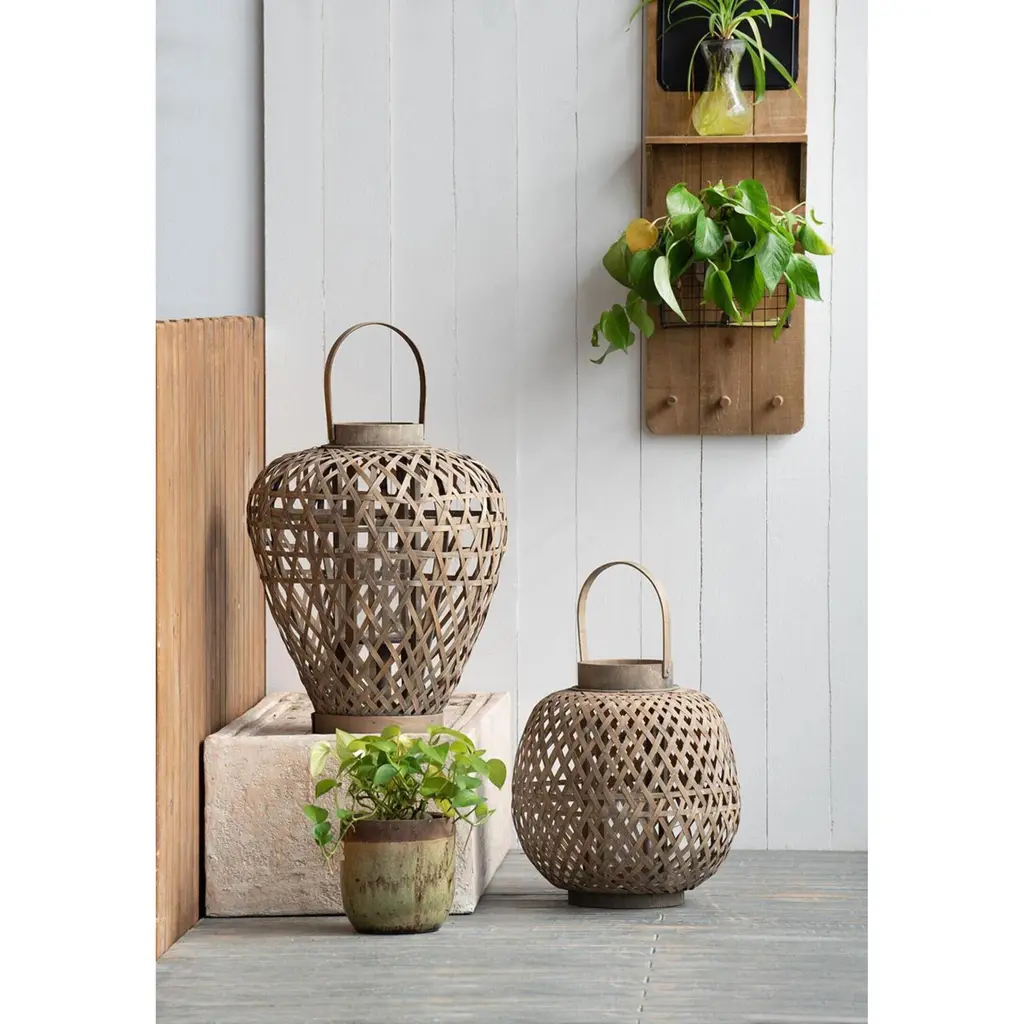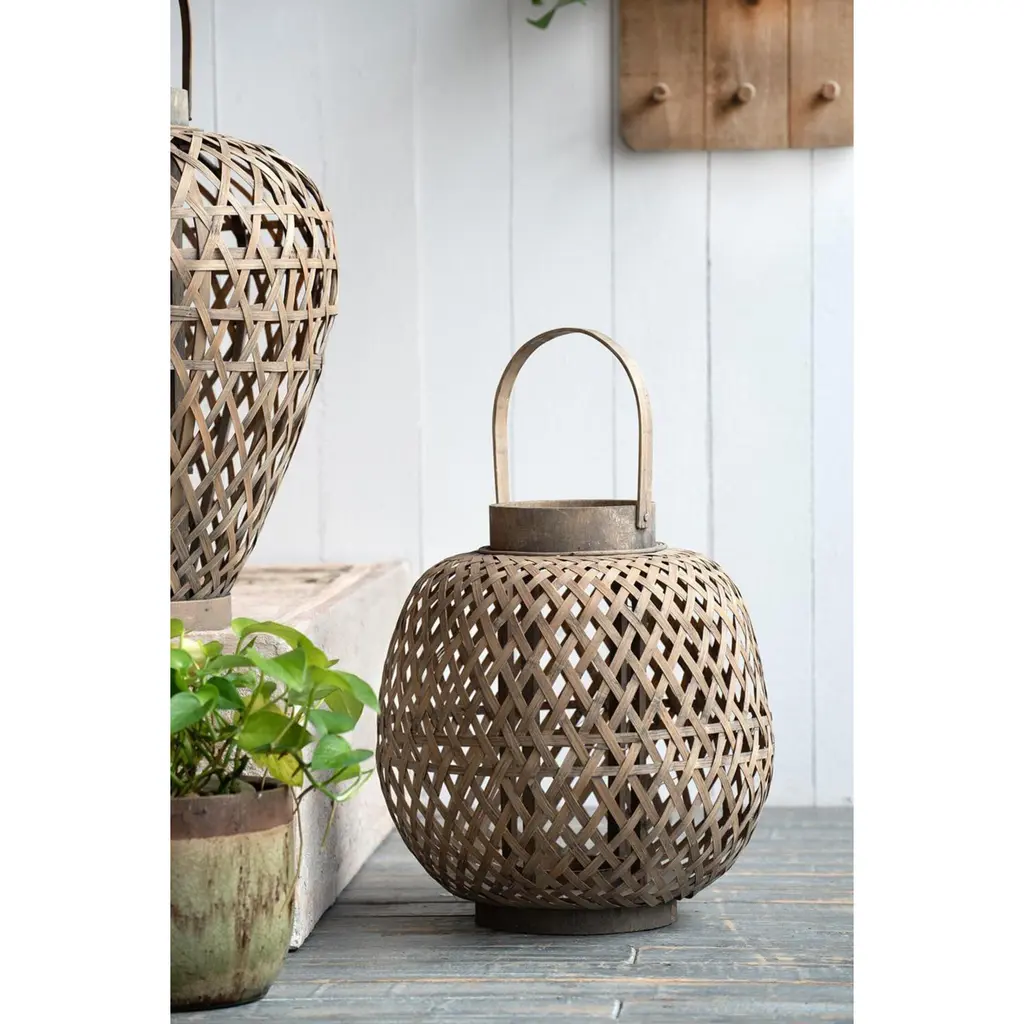 The Coconio Wood Lattice Lantern boasts a natural aesthetic sure to enhance any garden party. This piece is crafted from smooth wood strips woven into an oval shape for sculptural appeal. A small glass Candle Holder sits in the center, perfect for LED candles. This lantern serves as a lovely decorative accent even when not in use.