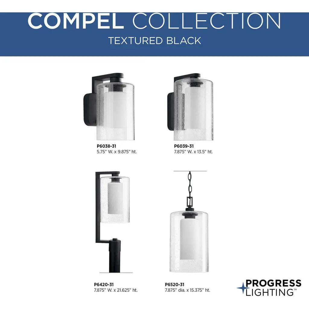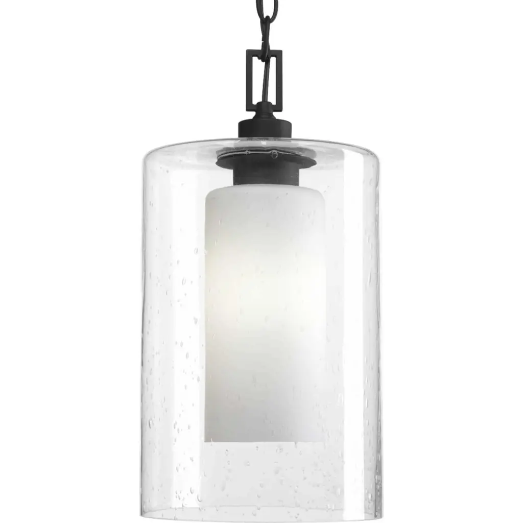 Outdoor lighting adds both beauty and enhances the safety of your home or property. Compel is our new outdoor collection featuring modern forms and layered glass. Etched opal glass within a seeded glass shade offers individuals design flexibility, as fixtures are ideal for exterior settings and in unexpected interior applications. One-Light hanging lantern for outdoor applications in a Black finish.