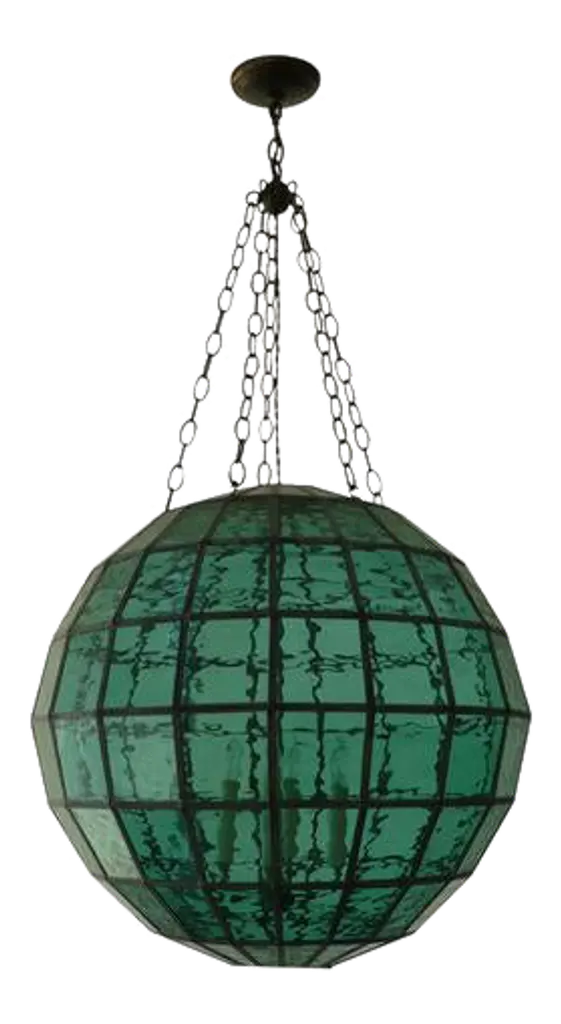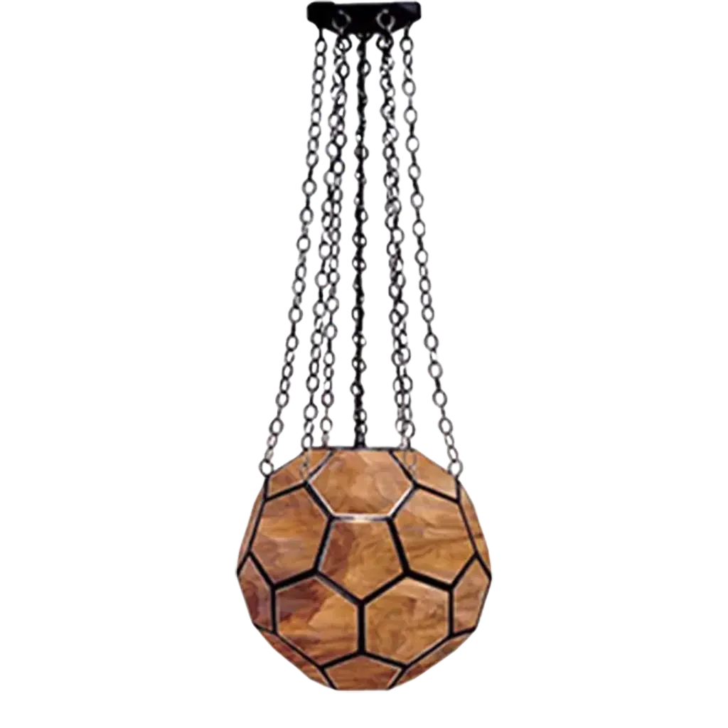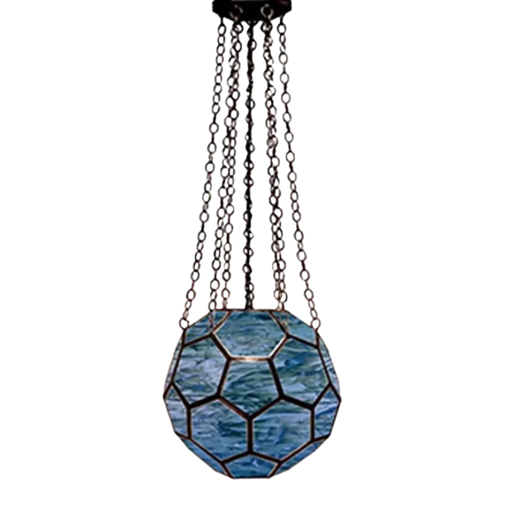 The classic best selling Marjorie Skouras Design Honeycomb Lantern, a favourite of her showrooms for the past 18 years, this is a lovely example in a swirled white artisanal glass in a handmade brass frame. Inspired by a piece seen by Marjorie in a George Washington Smith house in Montecito, California, she has made over one hundred of them in various glass colours since 2003. Hand made pewter frame with artisanal hand made glass. DIMENSIONS ; 18"dia x 18"h VOLTAGE/LAMP ; 120V / 1 porcelain socket 60-watt globe bulb max CHAINS ; 36" standard length chain with pentagonal canopy +++ CUSTOM SIZES AVAILABLE +++