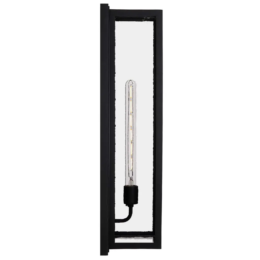 This lantern is forthright in its design, with clean lines and contemporary stylings. At home in a coastal setting or when the location requires a minimal look. Hand-forged in heavy gauge iron.Lantern shown in SBLC Zinc Grey Finish with SBLC Antique Glass. Hand-forged in heavy gauge wrought iron. All lanterns go through a metalizing process, a protective zinc layer added to ensure protection and durability against corrosion and harsh weather conditions.All light fixtures are handmade and made to order. Dimensions may vary slightly.All light fixtures ship with 5w LED Edison dimmable filament bulb.This lantern will ship within 8-10 weeks. Larger orders may have longer lead times. As with any handcrafted product, slight discrepancies are inherent in the art of forged iron, and even considered desirable as they indicate our old-world craftsmanship. Natural variations in tone, texture, and color may occur as our finishes are hand painted.
