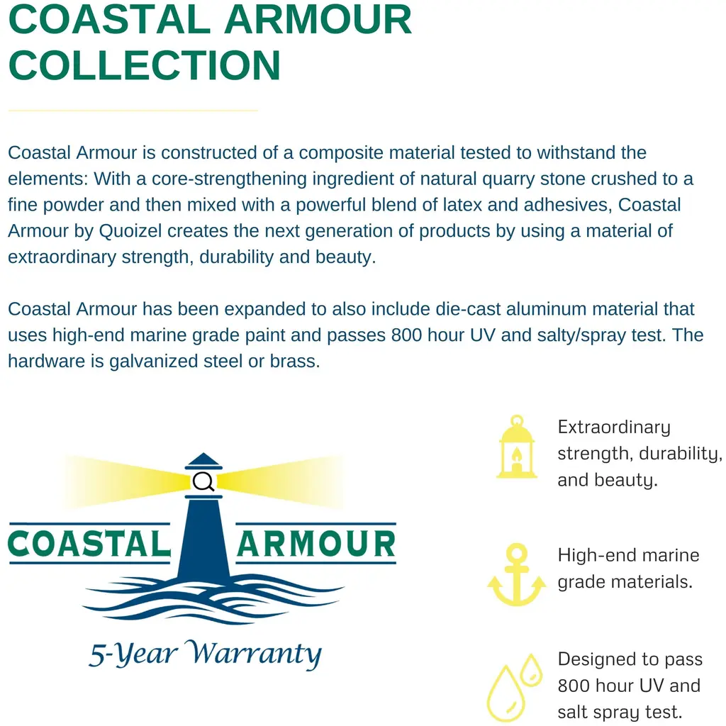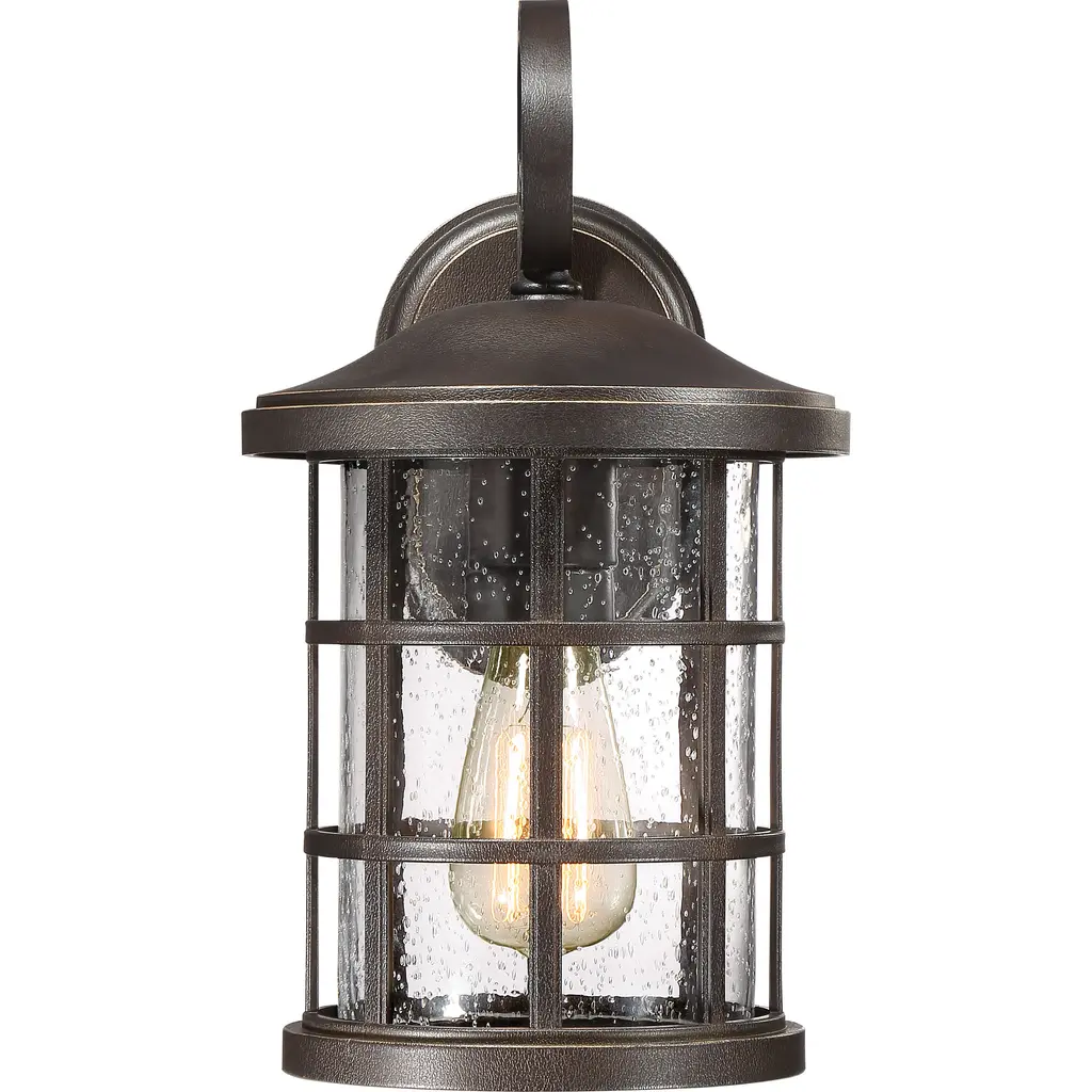 Crusade - PN Palladian Bronze Finish, Medium Wall Lantern: Inspired by Craftsman design, the Crusade Outdoor Series is clean and classic. Encased in the crisscrossed bands, the clear seedy glass emits plenty of light. The fixture body is created using a composite material suitable for extreme temperatures and is resistant to fading. It is a wonderful addition to the Coastal Amour Collection. Available in Mystic Black and Palladian Bronze finishes.