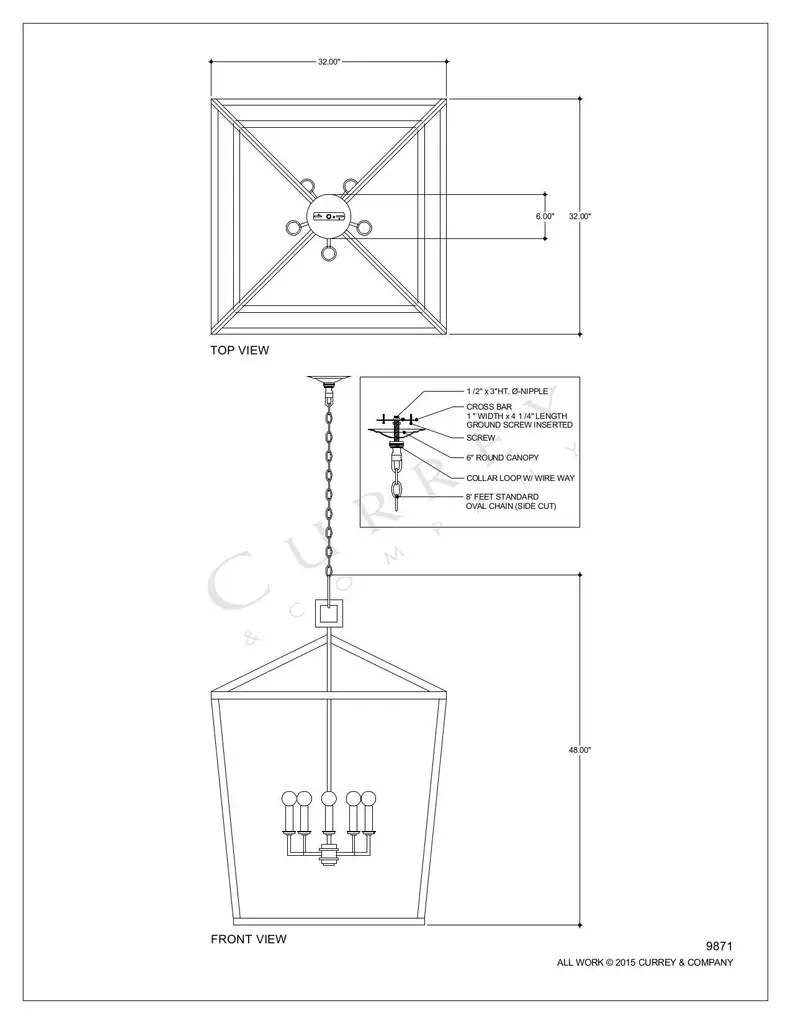 The Denison Black Grande Lantern is a hammered wrought-iron fixture in a Molé black finish. The classic lantern shape has stood the test of time to make it one of our most popular offerings. A design element of note is the square that fastens the lantern to the chain. This large-scale black lantern is one of a number of sizes and finishes in the Denison family. Wipe with a lint-free clean cloth.
