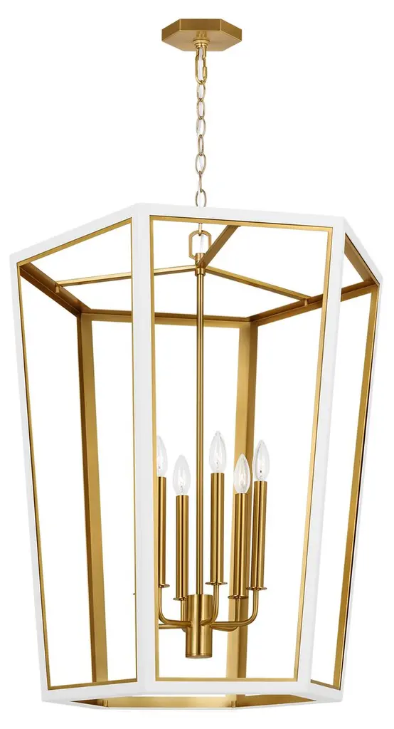 This six-bulb, six-sided lantern, will add glamour to traditional and contemporary rooms alike. In addition to being damp rated, the lantern can be mounted on sloped ceilings.