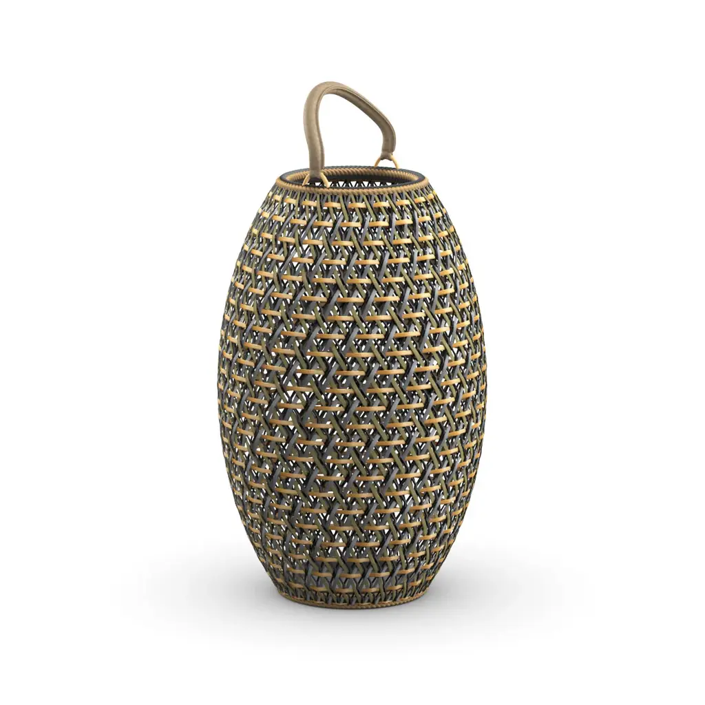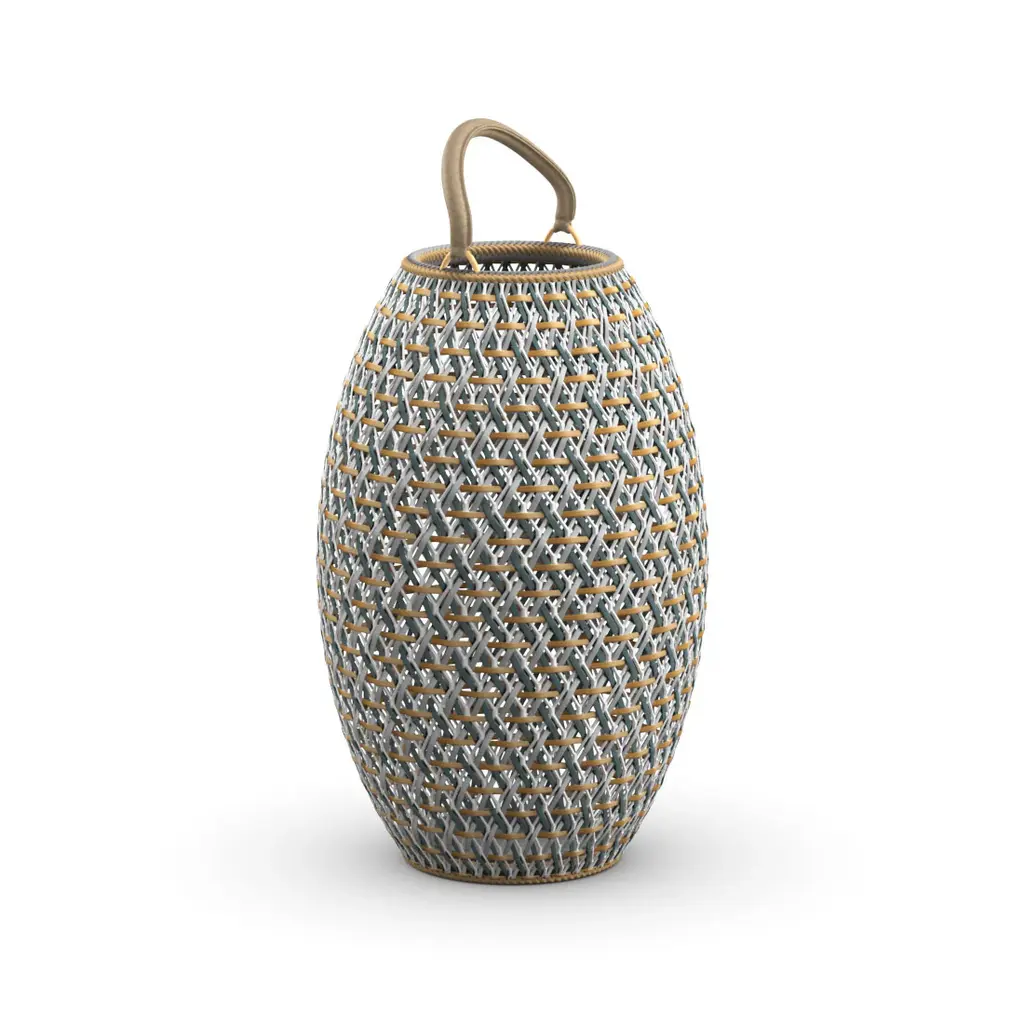 Light up any outdoor area with the DALA Lantern from Dedon. Crafted with the same hand-woven mesh structure and eco-friendly fiber as other DALA pieces, this nature-inspired lantern is lightweight and easy to move about your space thanks to the convenient handle. All-weather ready, just add your favorite pillar candle for a welcomed glow in the garden or on the patio. Highlights