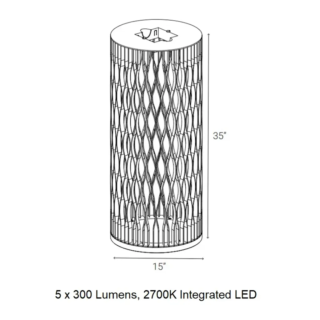 The Dala Solar Portable Outdoor LED Lantern from Les Jardins features a sleek aluminum frame with a gunmetal finish and an intricate wavy lattice design. Its solar-powered illumination creates mesmerizing shadow patterns, enhancing the ambiance of patios, gardens, or outdoor seating areas with understated elegance and functional charm. Highlights
