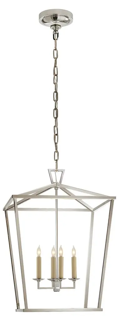 Crafted from iron with a gleaming, polished nickel finish, this lantern will give any room a warm and welcoming glow. Holds four candelabra bulbs. Hardwired.