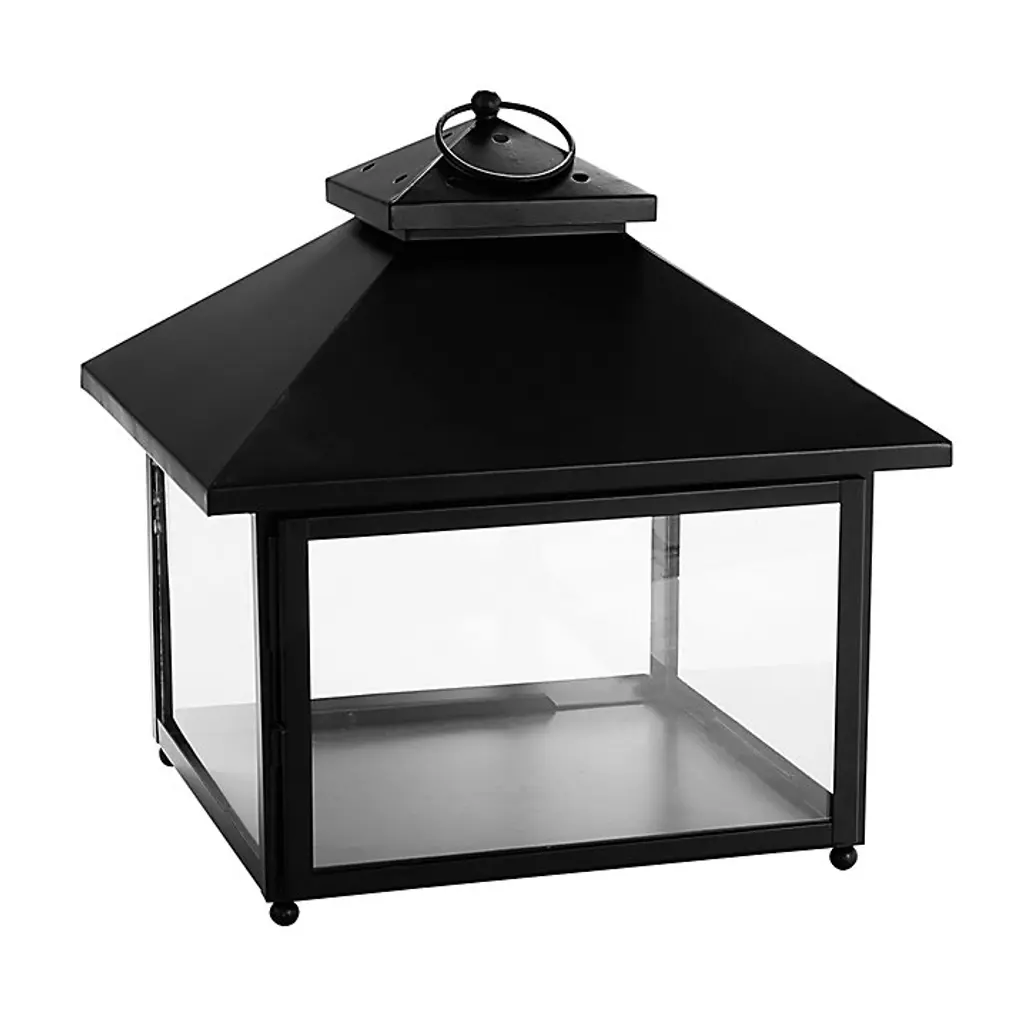 With its sleek lines and matte black finish, our Davis Square Lantern feels perfectly at home with any outdoor decor on the porch, patio, outdoor table. This estate-sized outdoor lantern is sturdily crafted of powder-coated iron with vented double roof, so you can use your own pillar inside. Clear, tempered glass panes allow plenty of romantic candlelight to shine through. One side has a hinged door with latch for easy cleaning and candle placement. Davis Square Outdoor Lantern features: