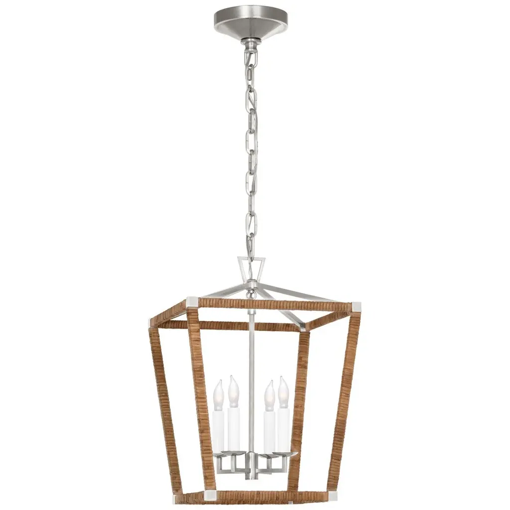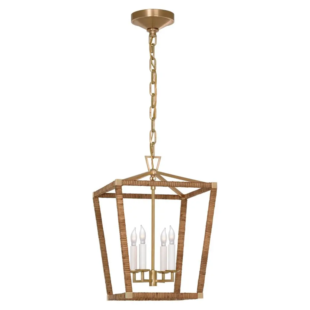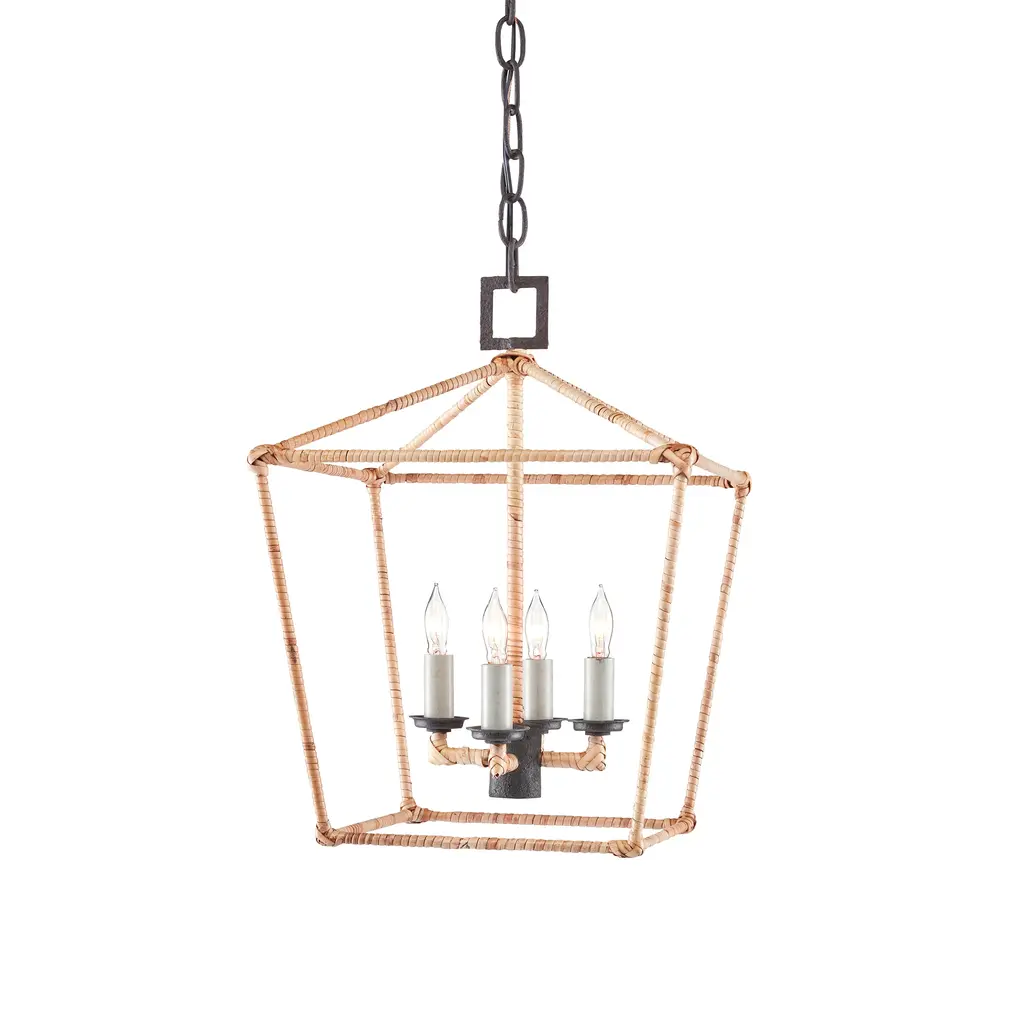 The Denison Rattan Chandelier is a hammered wrought-iron fixture in a Molé black finish that is wrapped in rattan. The classic lantern shape has stood the test of time to make it one of our most popular offerings. A design element of note is the square that fastens the chandelier to the chain. This is one of a number of sizes and finishes in the Denison family. Features