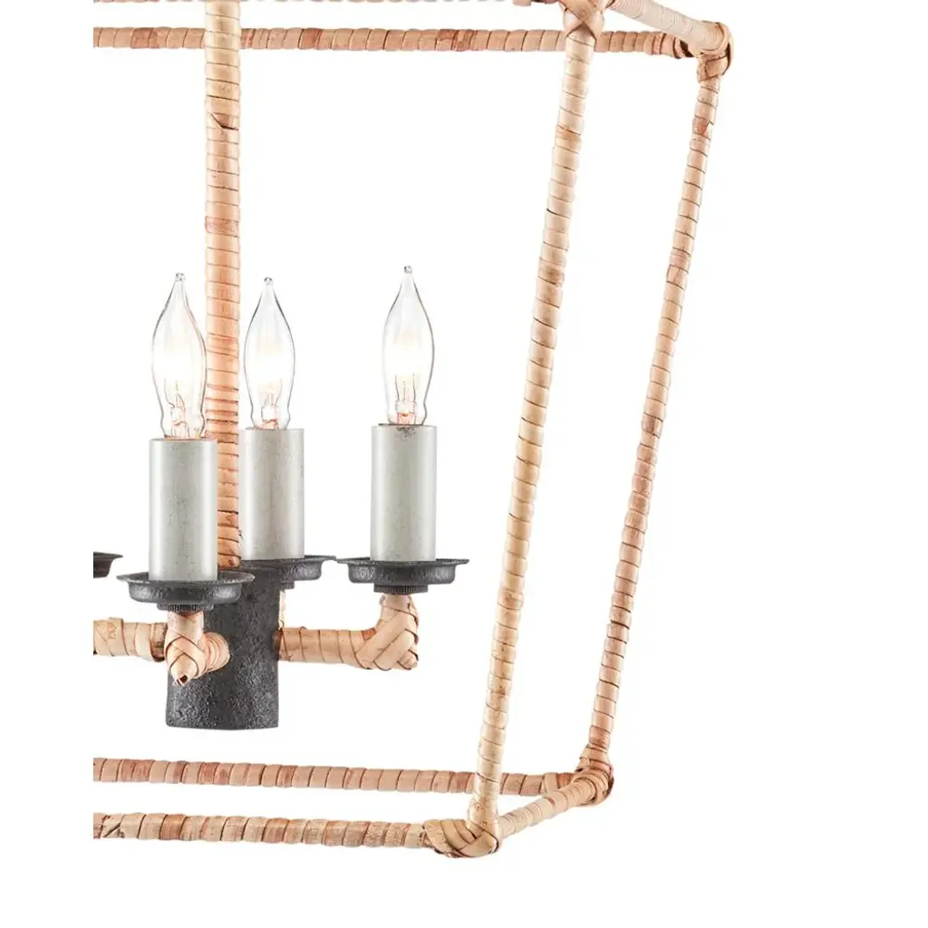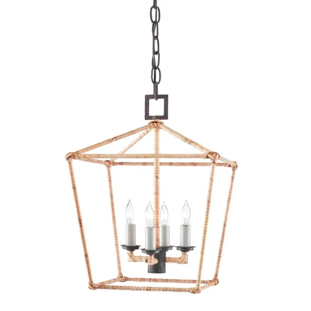Well balanced between natural and refined, this gumdrop-shaped pendant light features a white iron top connected to a natural rattan bottom. These are a fun feature over bedside tables or along a kitchen island.
