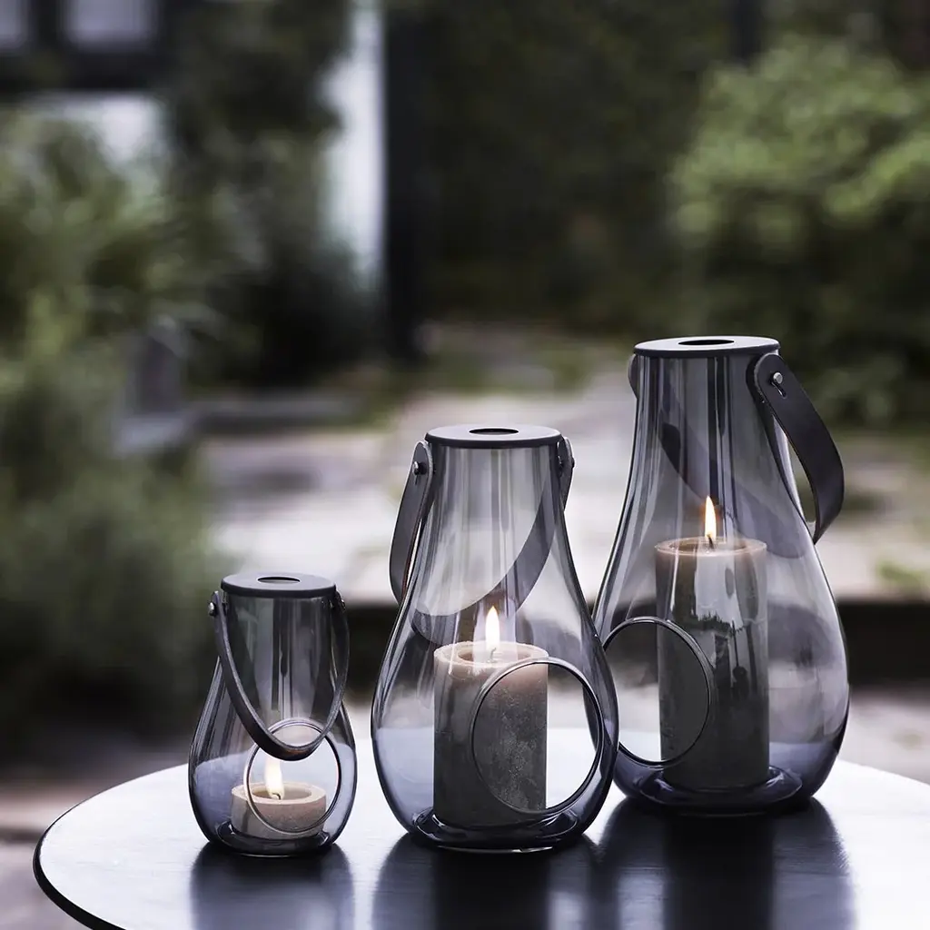 The Design with Light table lantern can be used all year round For summer evenings on the patio and for decoration on the table, on the stairs and in windows Maria Berntsen has designed this mobile light source in glass and full-grain leather to create that distinctive Scandinavian atmosphere anywhere. The lanterns are available in both transparent and frosted glass and a beautiful alone or in combination. A great gift idea – not least for yourself!