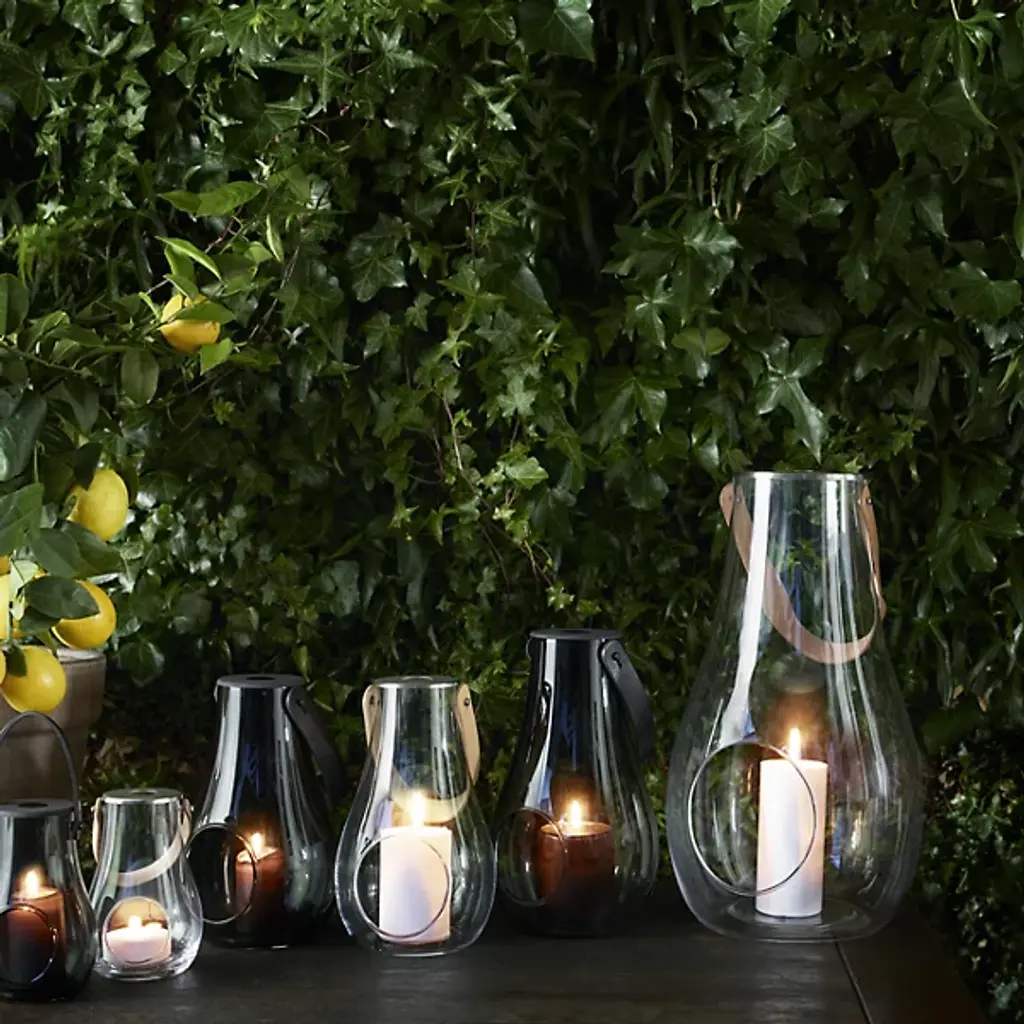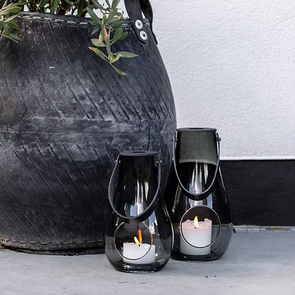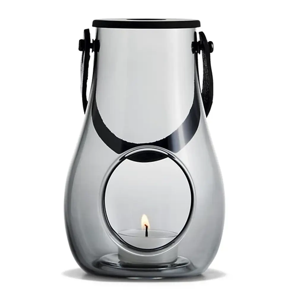The Design with Light Lantern from Holmegaard showcases the organic irregularities inherent in mouth-blown glass construction. Maria Berntsen's approach celebrates these natural variations, including small air bubbles that make each piece unique. The curved glass body pairs with a full-grain leather carrying strap for indoor and outdoor mobility. The clear walls allow candlelight to cast warm patterns while the sturdy construction withstands regular movement. This lantern works equally well as functional lighting or a decorative accent, adapting to different settings throughout the seasons.