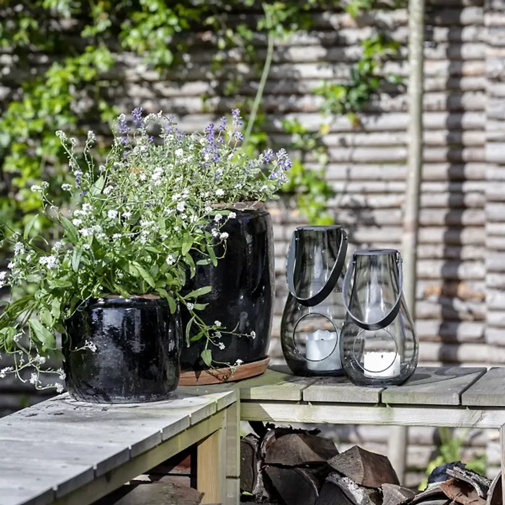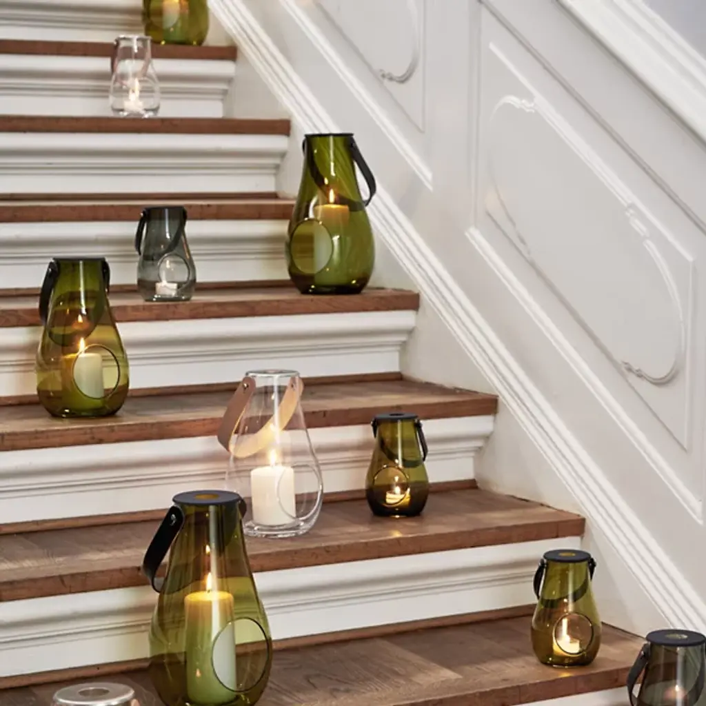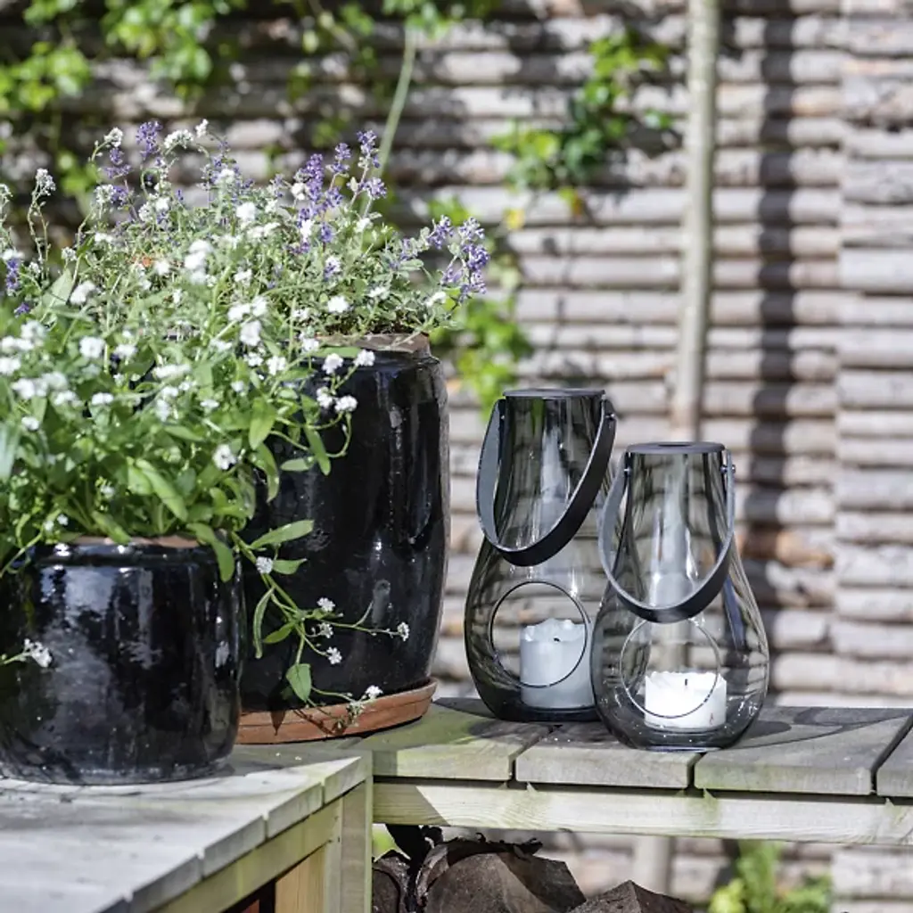 The Design with Light Lantern from Holmegaard showcases the organic irregularities inherent in mouth-blown glass construction. Maria Berntsen's approach celebrates these natural variations, including small air bubbles that make each piece unique. The curved glass body pairs with a full-grain leather carrying strap for indoor and outdoor mobility. The clear walls allow candlelight to cast warm patterns while the sturdy construction withstands regular movement. This lantern works equally well as functional lighting or a decorative accent, adapting to different settings throughout the seasons.