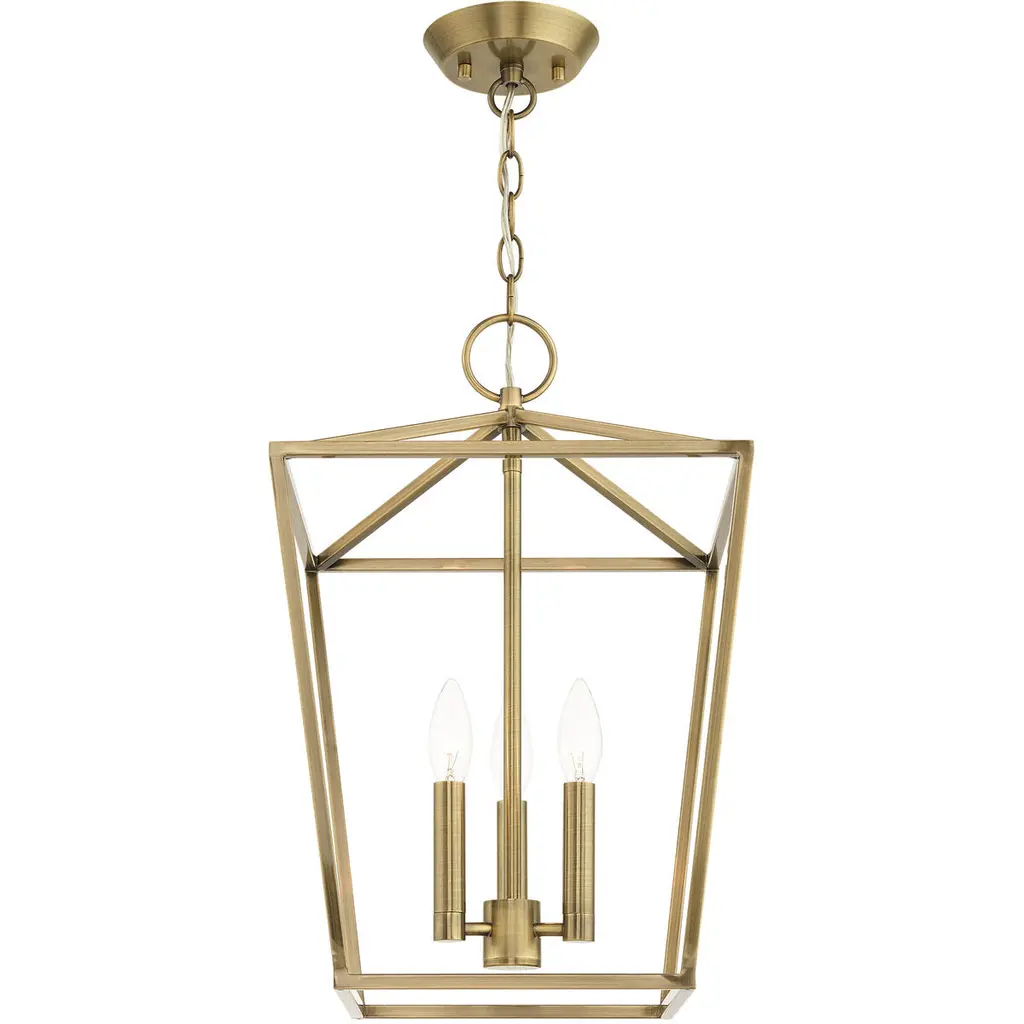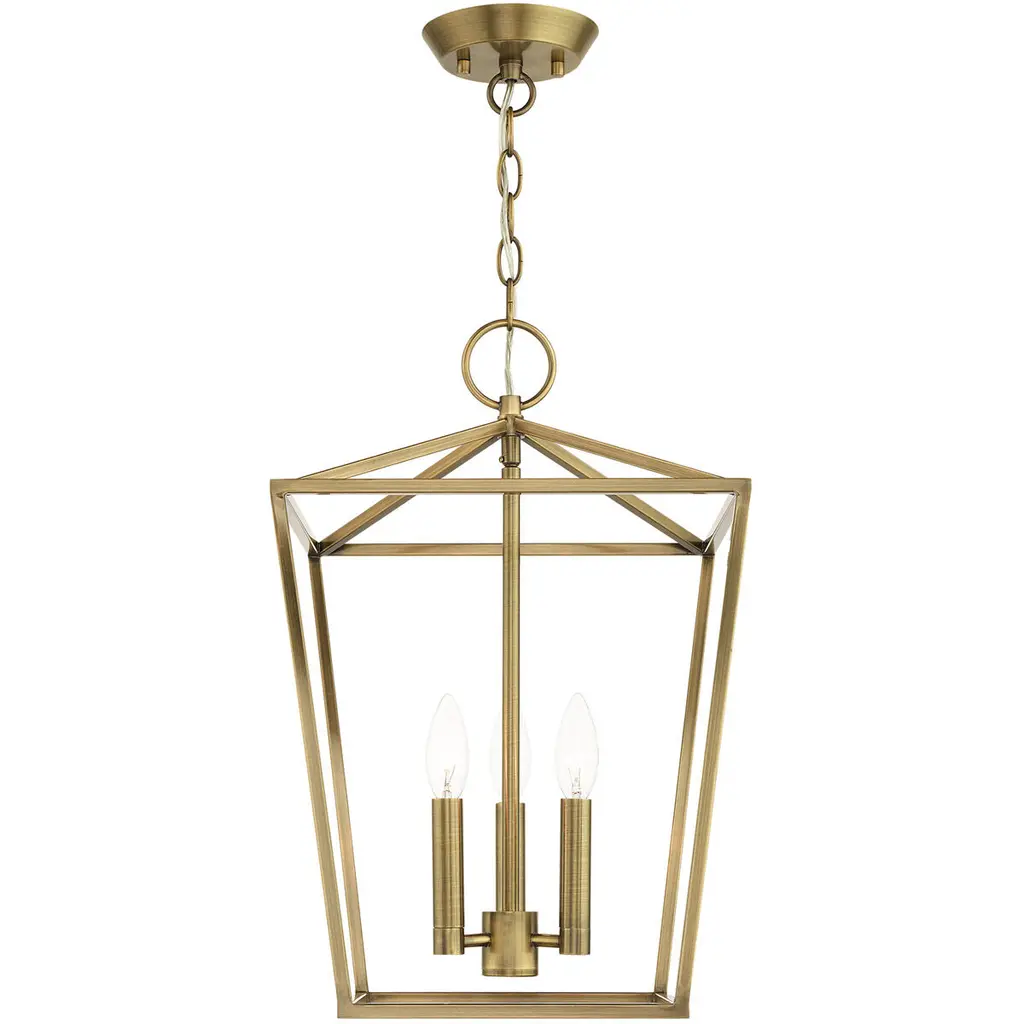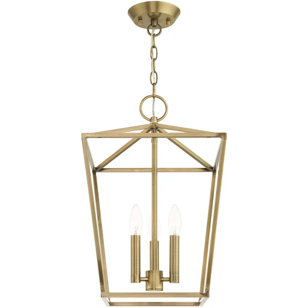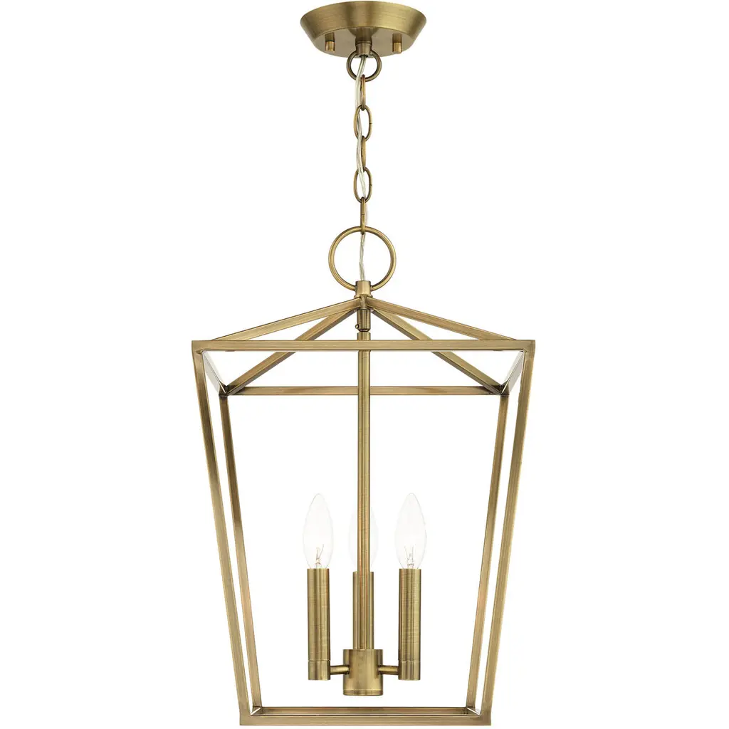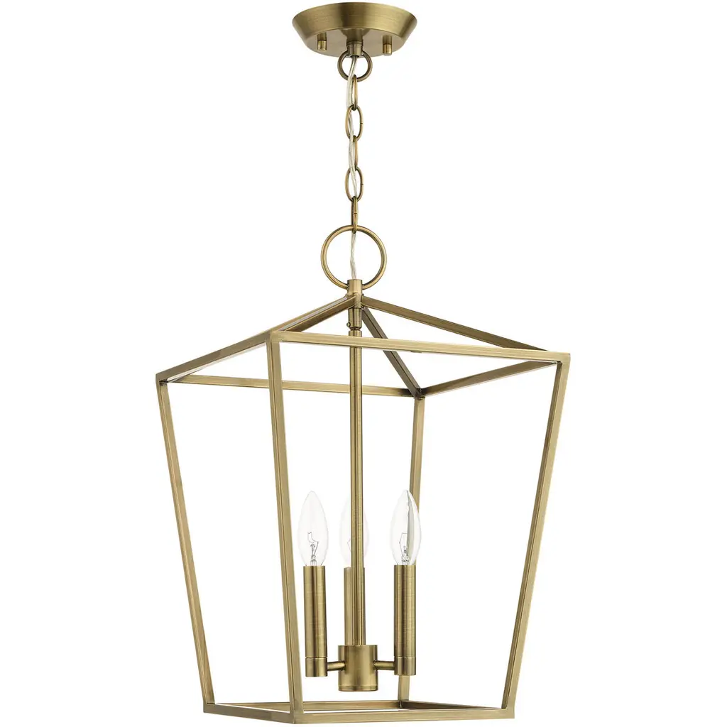 Devone 3 Light 13 Inch Antique Brass Convertible Semi Flush/lantern Ceiling Light