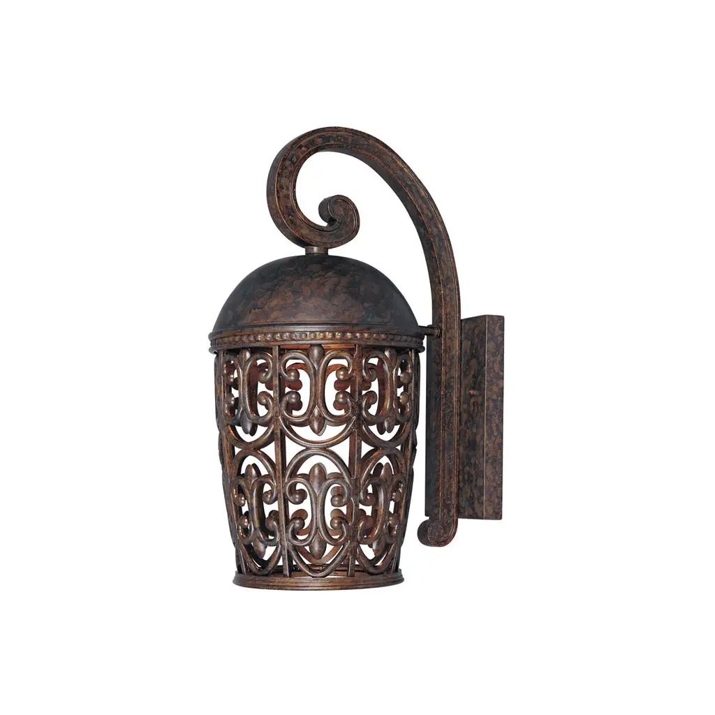 Chambery outdoor dark sky lanterns are the latest in outdoor lighting design. The fixture is designed to focus the light downward where it is needed and prevent the unwanted glare from spreading upward and outward. This collection features an intricate pattern of scroll grill work with a solid Mediterranean Patina finish that complements the exterior decor of any home. The sturdy, weather resistant cast aluminum construction along with waterproof seal protects the lantern from harsh outdoor elements to ensure the long life of the fixture. These outdoor lights install easily and deliver welcoming, safe and reliable exterior lighting. This collection's delicate pattern of scroll grill work is offered in two finishes; Mediterranean Patina and Oil Rubbed Bronze.