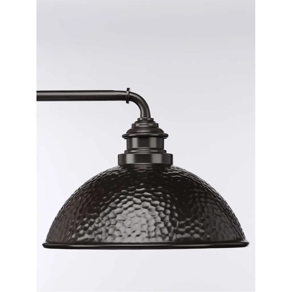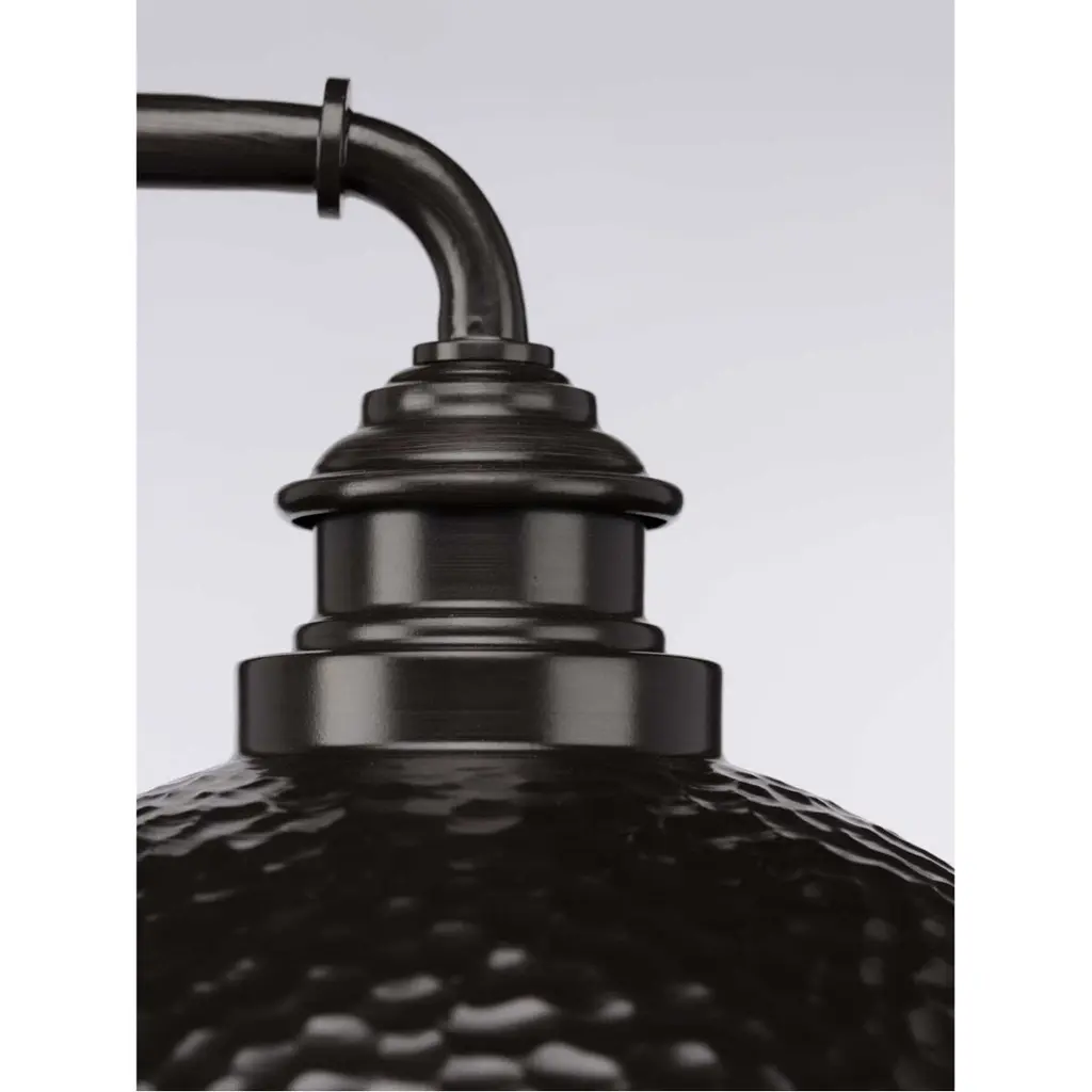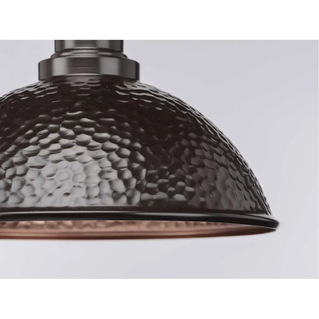 Celebrate the rustic craftsmanship as the Englewood one-light post lantern washes light over your favorite outdoor setting beneath its stunning, Antique Bronze hammered finished shade with a handsome copper interior.