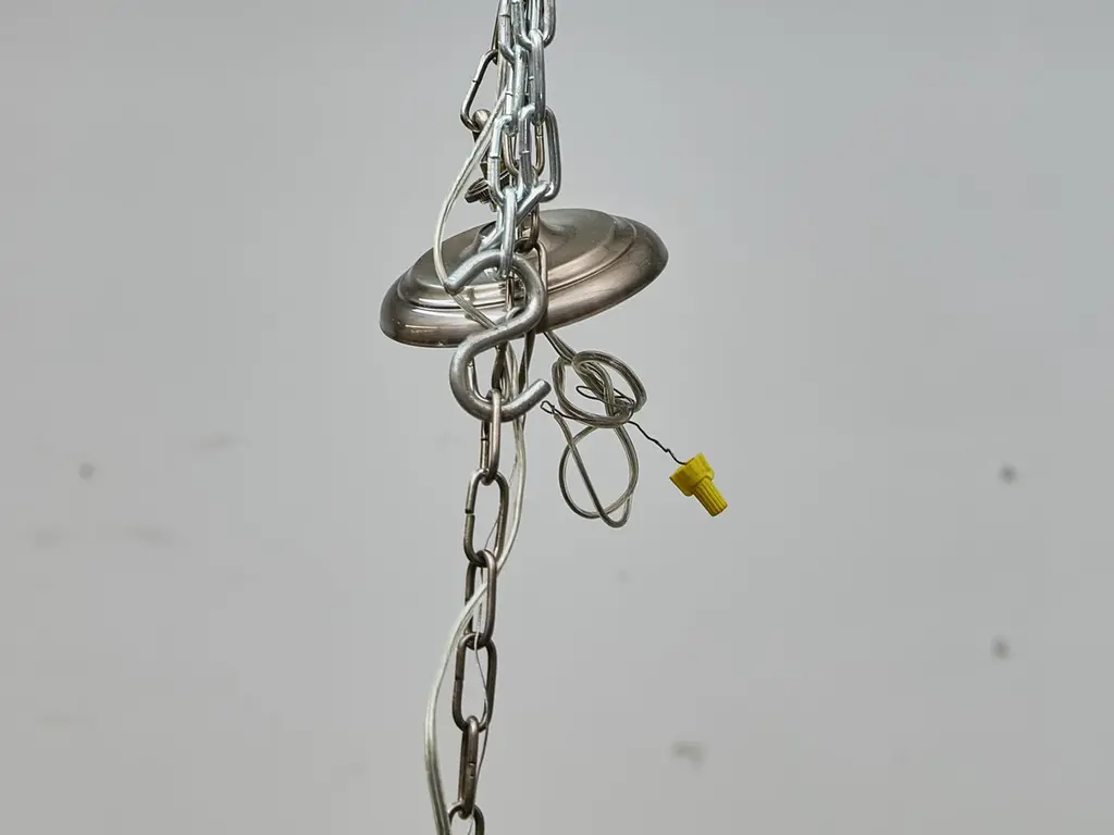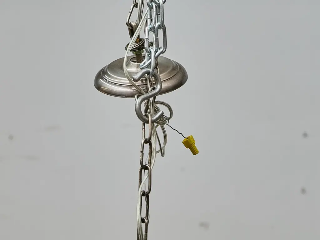 English Midcentury Nickel Bell Lantern With Glass Dome And Three Lights
