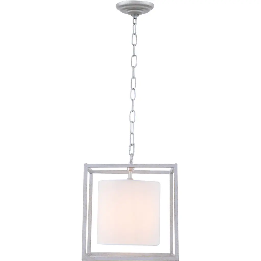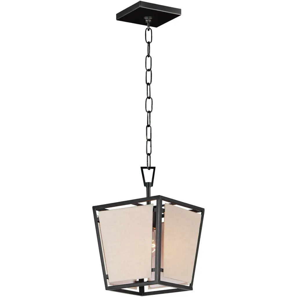 Caged Small Lantern in Bronze with Natural Paper Shade Designer: Eric Cohler Canopy: 7" Round Mounting: Chain Shade Detail: 11" Natural Paper Cube Socket: E26 Keyless Wattage: 60 B11 Safety Rating Location: DRY