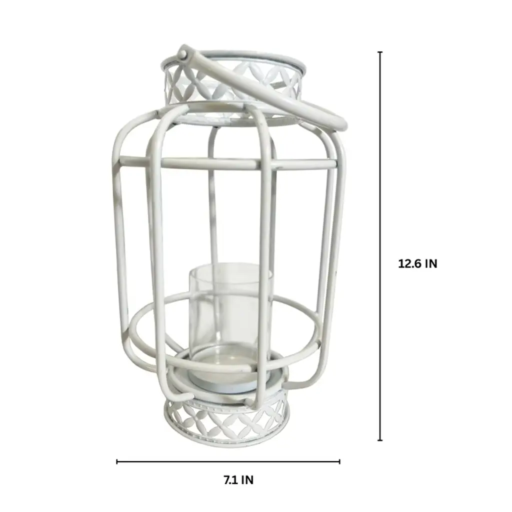 Essential Decor & Beyond 12.6" White Tabletop Metal Lantern Candle Holder With Handle
