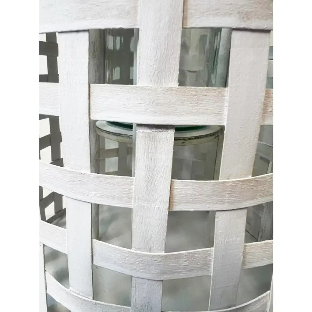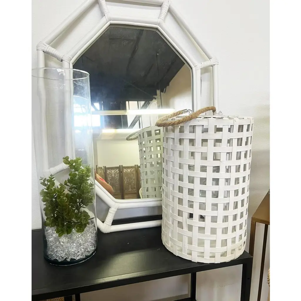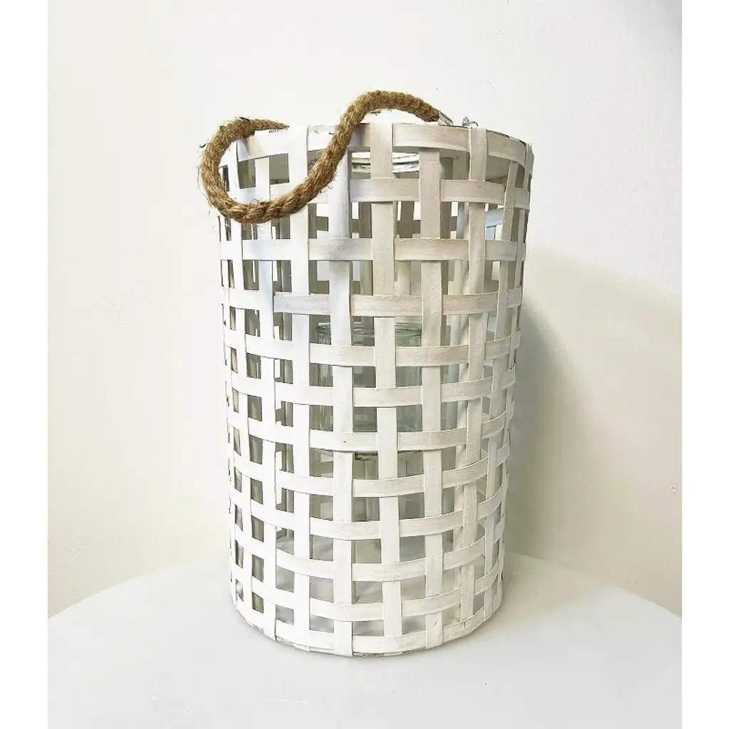 Essential Decor & Beyond 15.4" Tropical White Bamboo Hanging Lantern With Glass Candle Holder And Rope Handle Decorative Accent