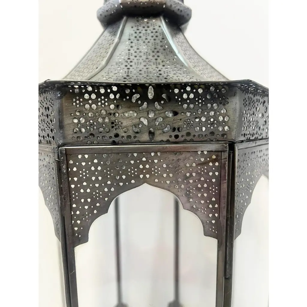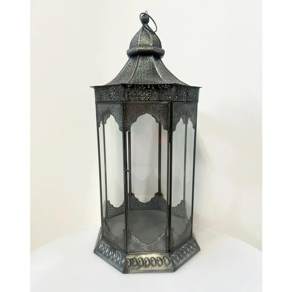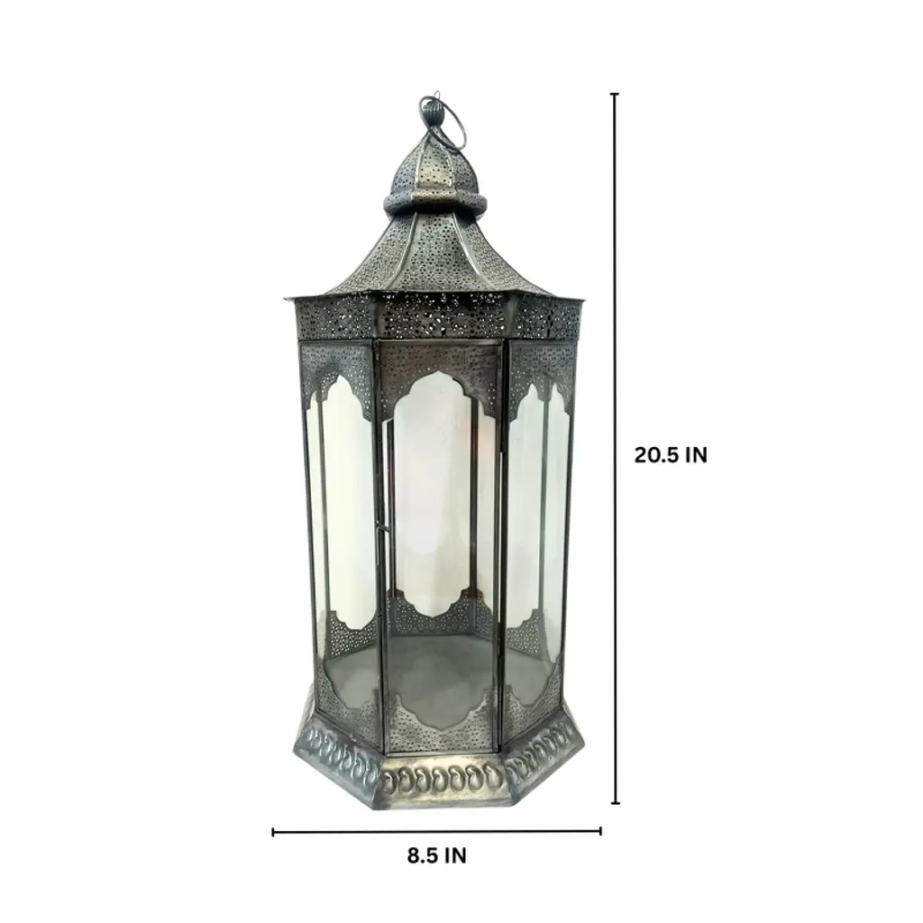 The Essential Decor & Beyond 20.5" Moroccan Metal Hanging Lantern Decorative Accent is a striking piece that brings a touch of exotic charm to any setting. With its intricate design and antique finish, this beautiful and versatile lantern serves as a unique focal point, enhancing your home or event décor with its captivating presence.