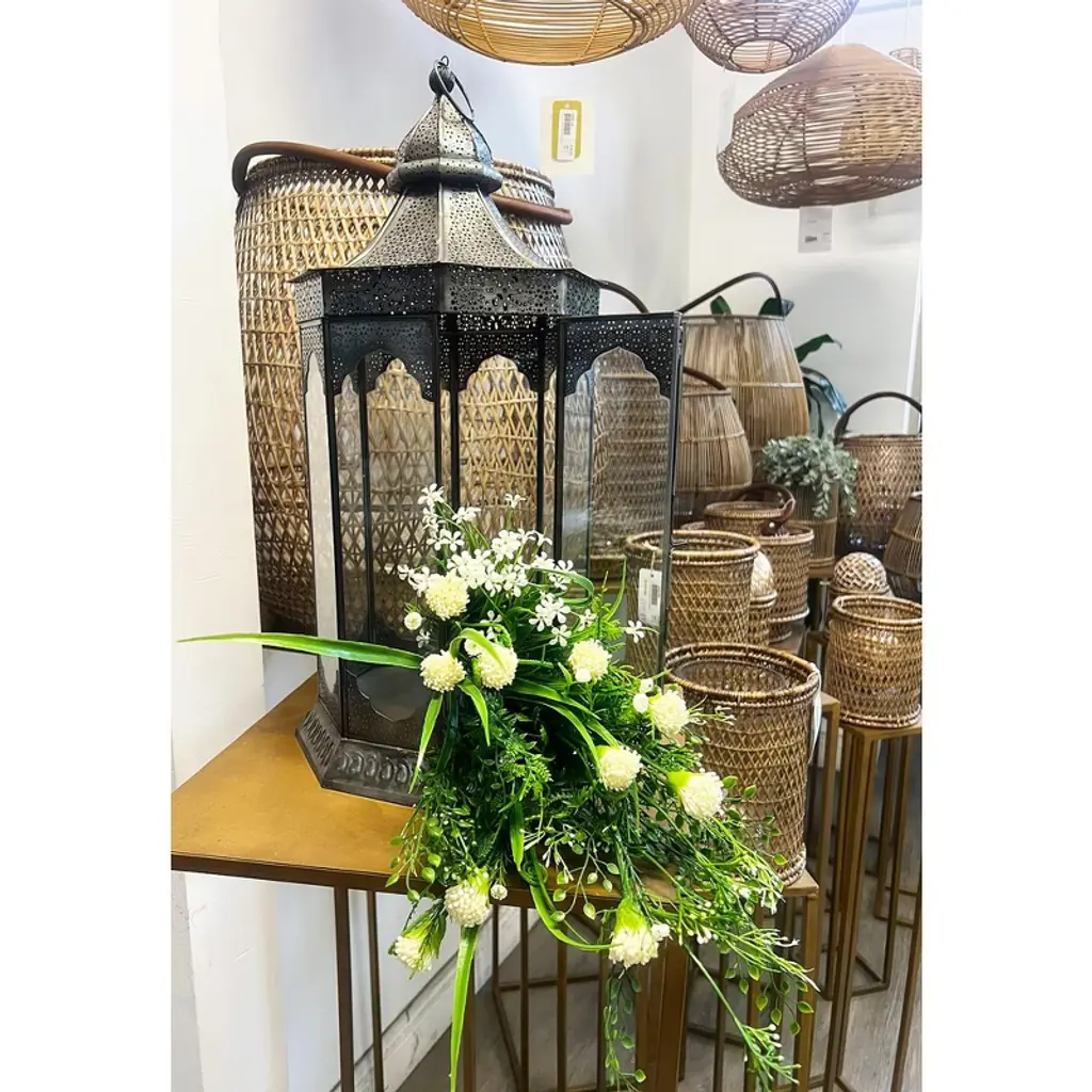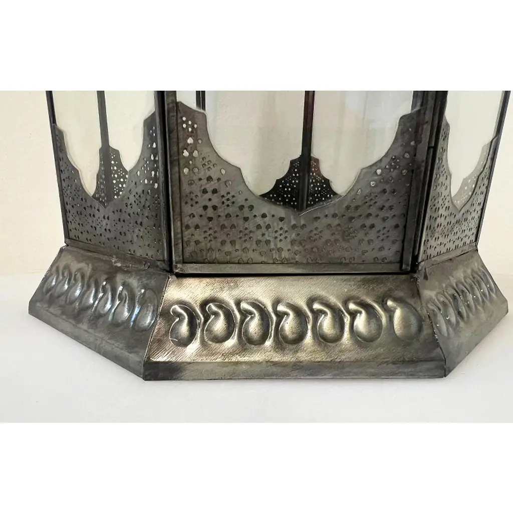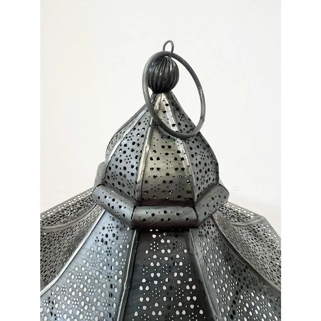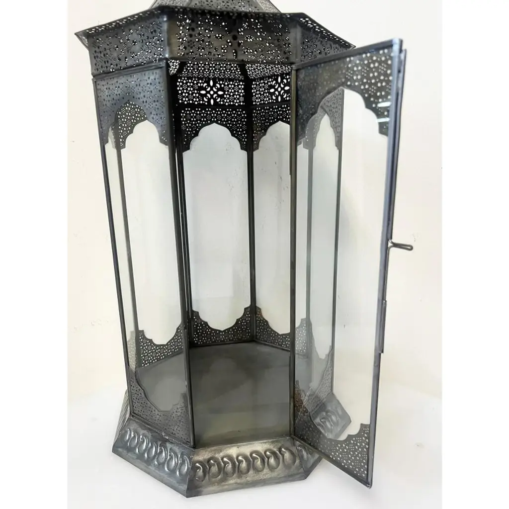 The Essential Decor & Beyond 20.5" Moroccan Metal Hanging Lantern Decorative Accent is a striking piece that brings a touch of exotic charm to any setting. With its intricate design and antique finish, this beautiful and versatile lantern serves as a unique focal point, enhancing your home or event décor with its captivating presence.