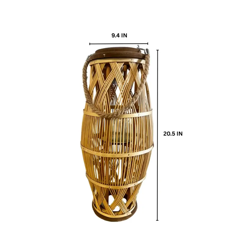 Essential Decor & Beyond 20.5" Tropical Bamboo Hanging Lantern With Glass Candle Holder And Rope Handle Decorative Accent