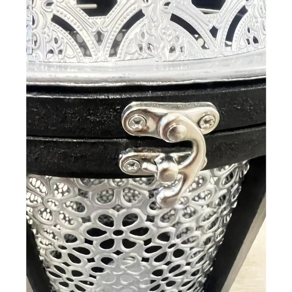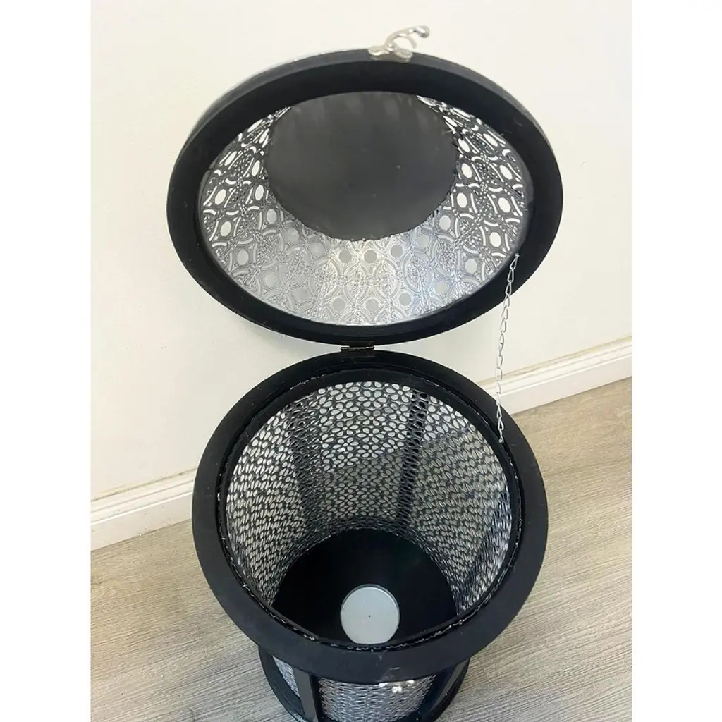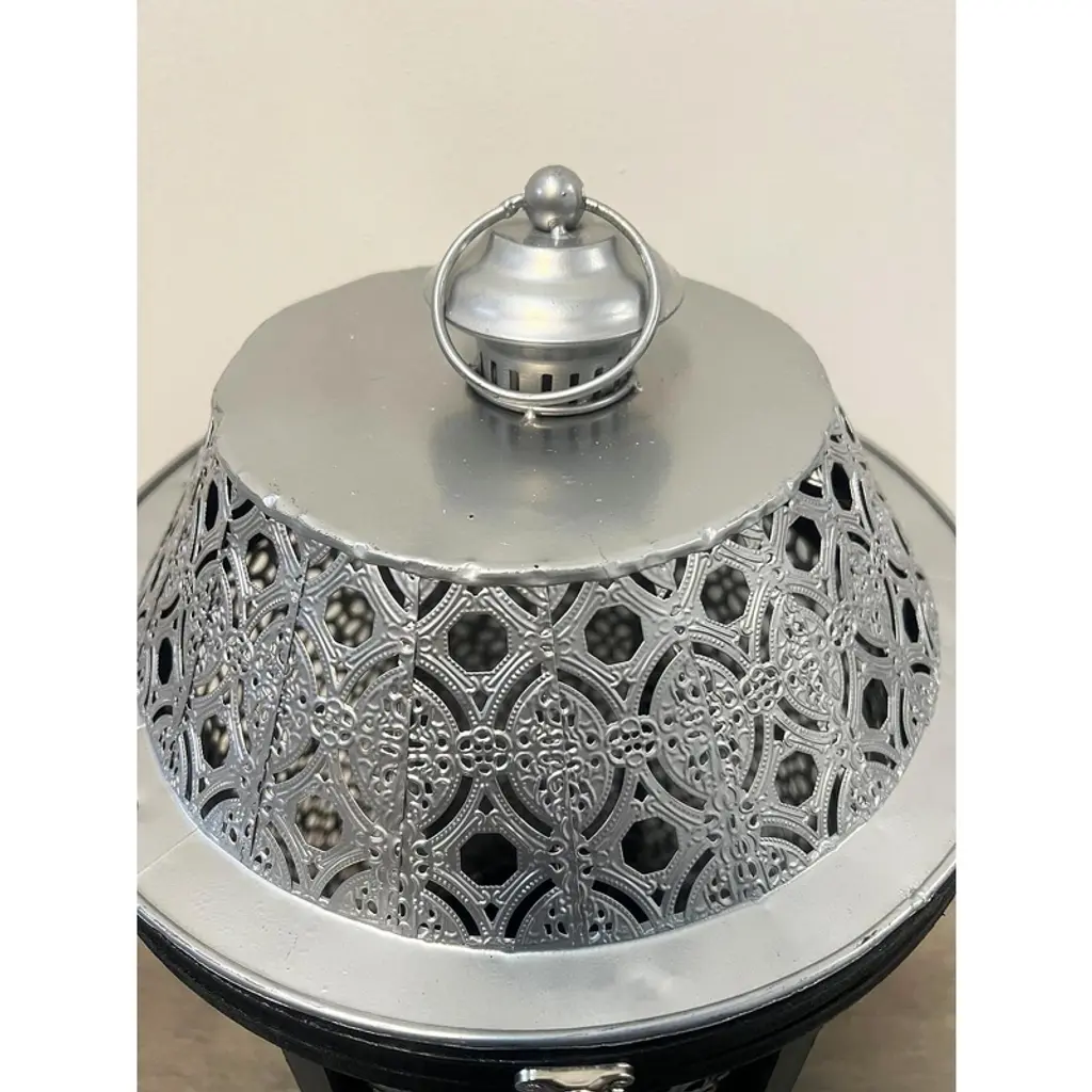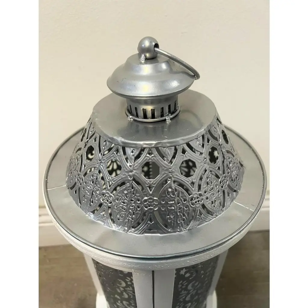 A set of two decorative lanterns, one black and one white, each with its own distinct vintage-inspired design and intricate metal detailing. This stylish duo provides a charming way to enhance your home or event with decorative lighting. The contrasting colors and unique designs create a visually striking set that complements a variety of décor styles. Sizes: Large (Black): 23.5" in height, 13" in diameter Small (White): 18.75" in height, 9" in diameter