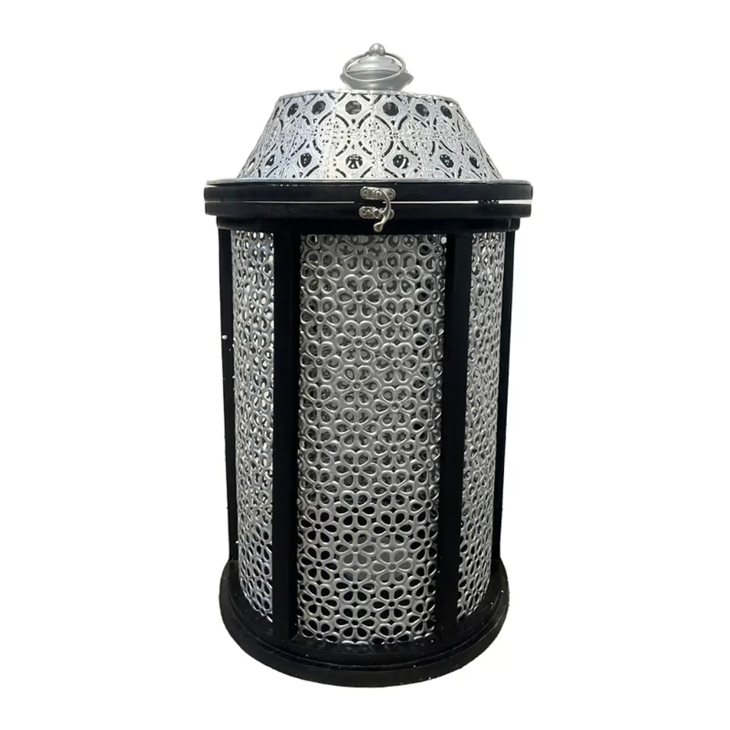 Essential Decor & Beyond 2Pcs Set Black And White Wood And Metal Lanterns