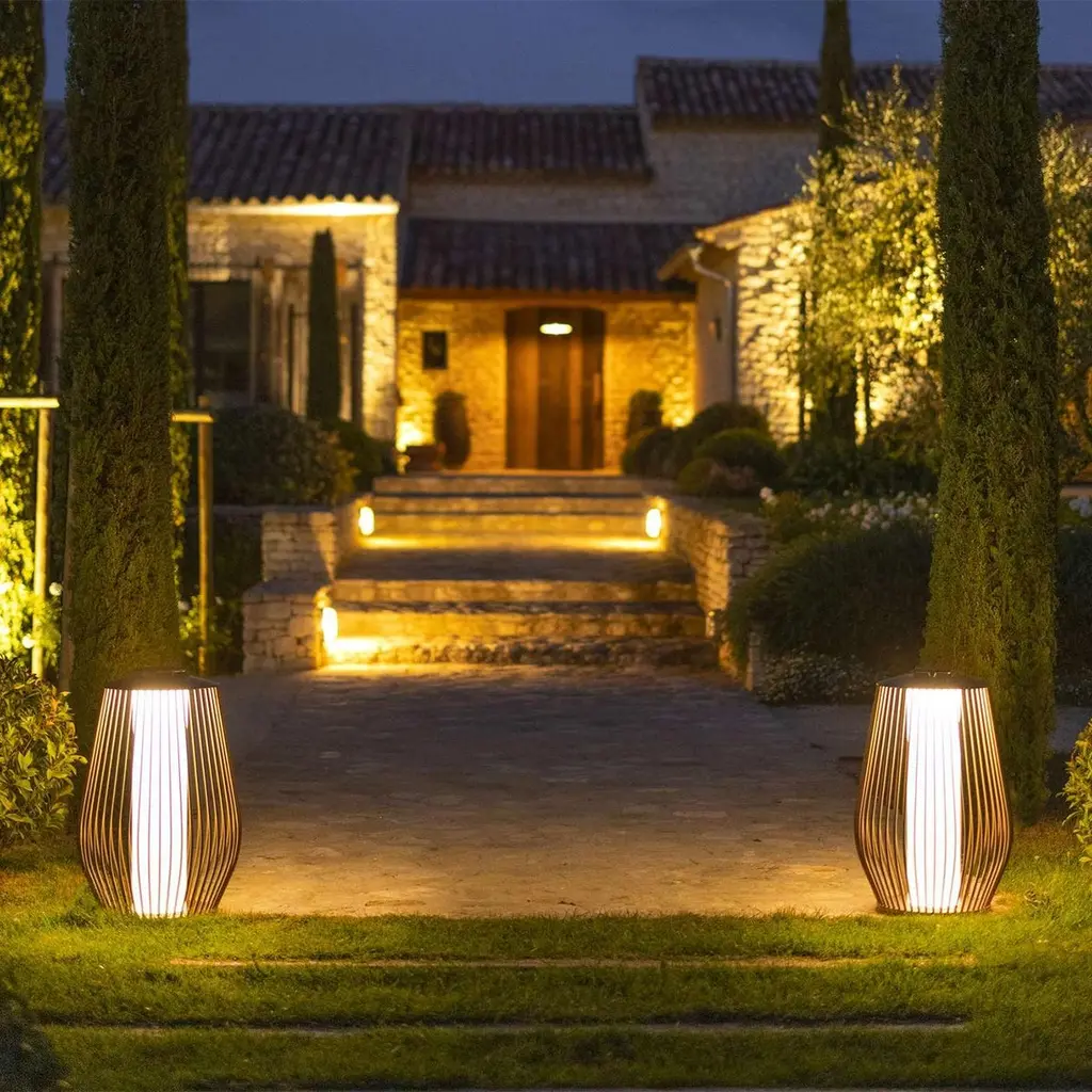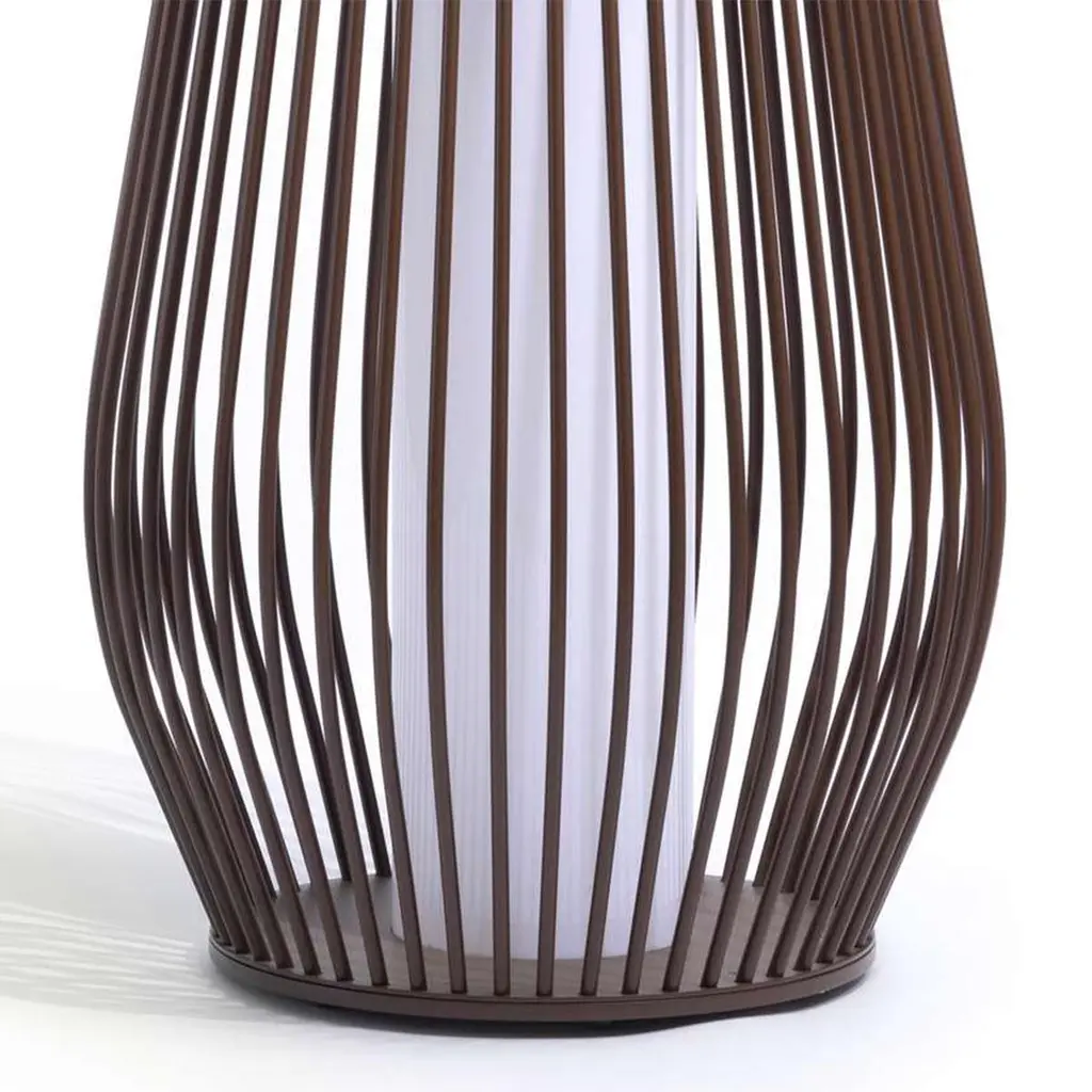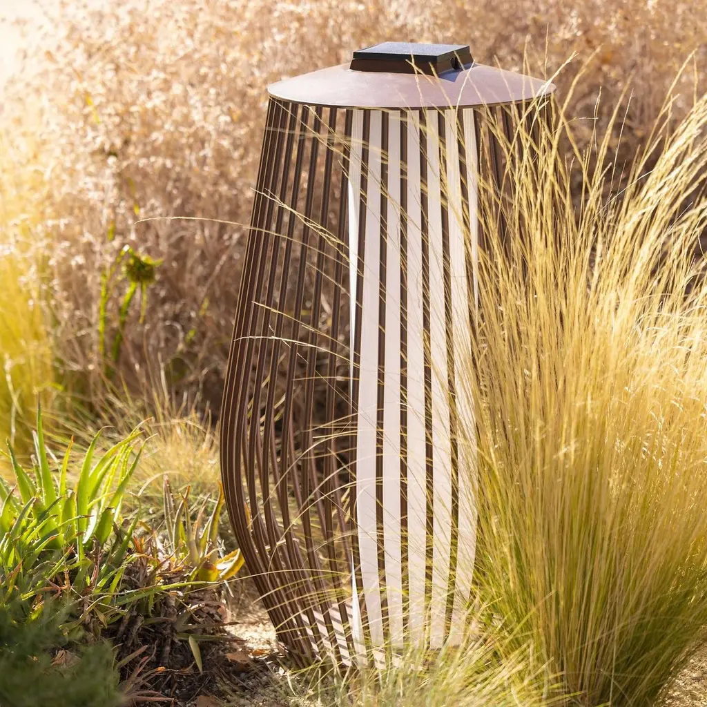 Lantern Ethan Solar with all structure in powder-coatedaluminium in corten finish, outddor-indoor. Solar and rechargeable lantern. Also available in black finish, on request.