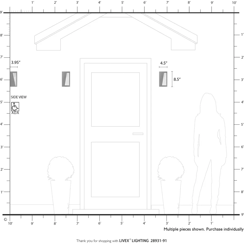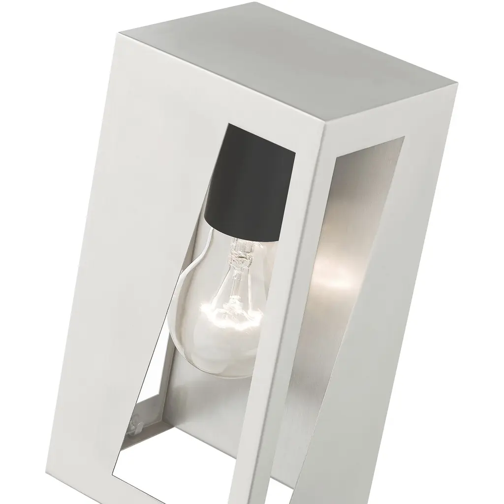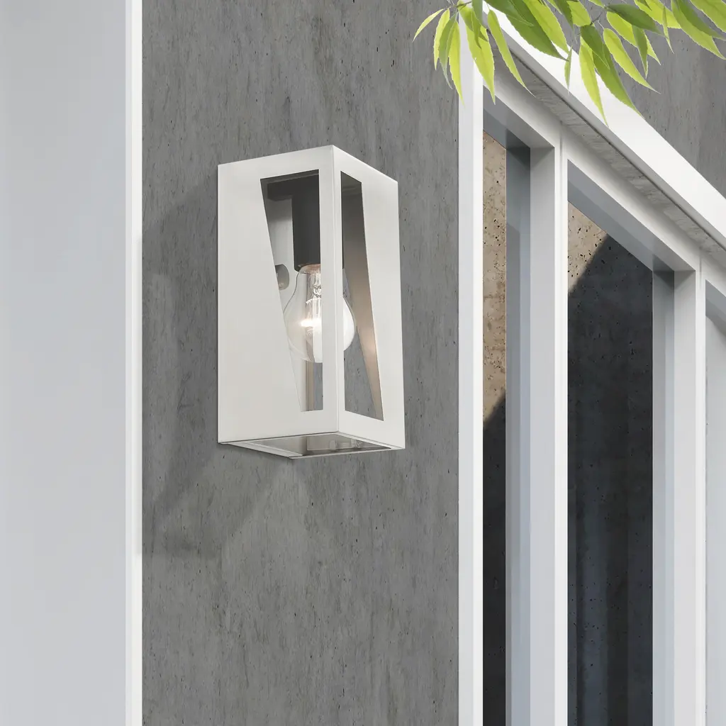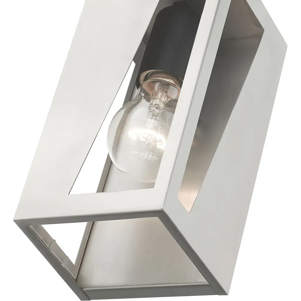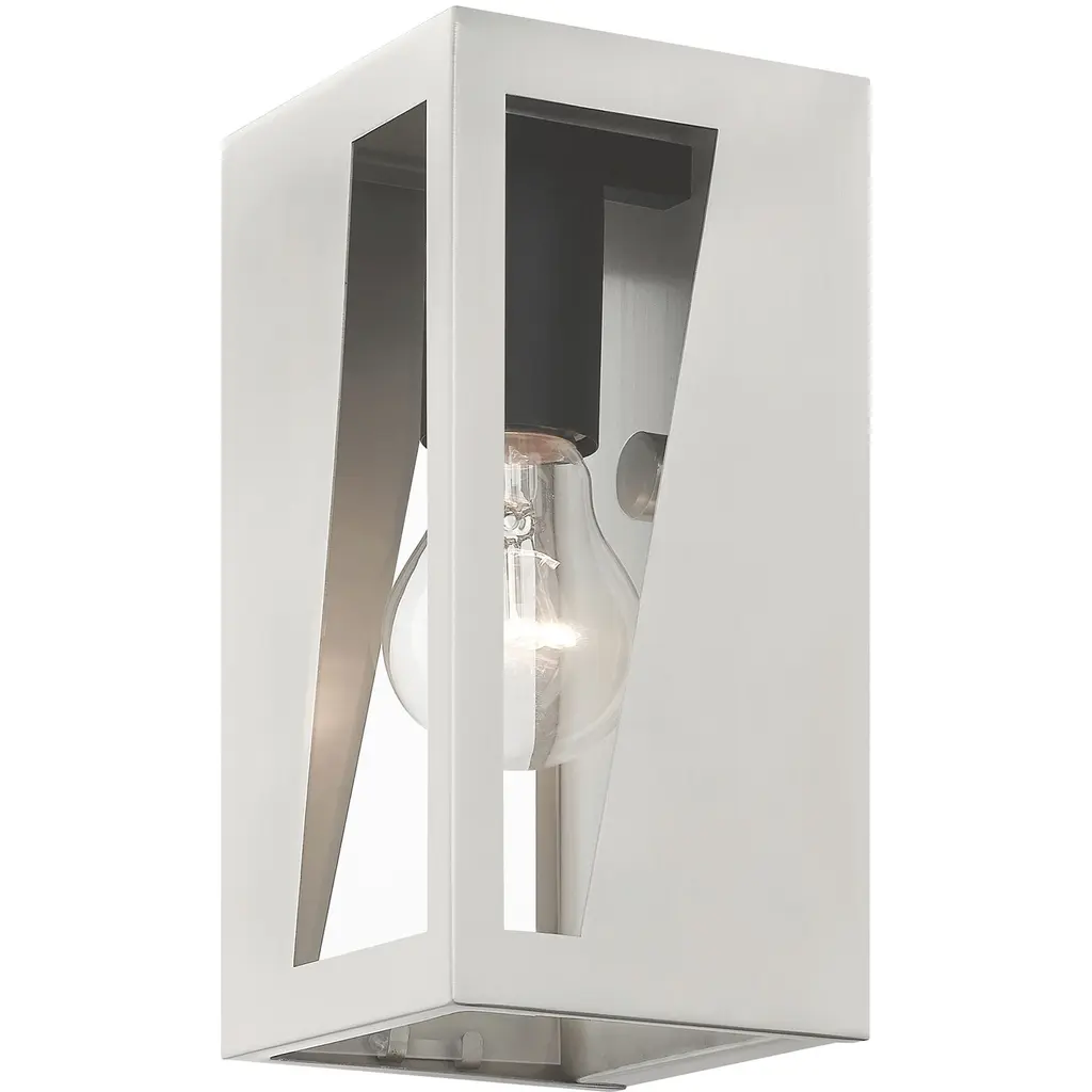 1 Light Brushed Nickel Outdoor Small ADA Wall Lantern with Black Finish Accents