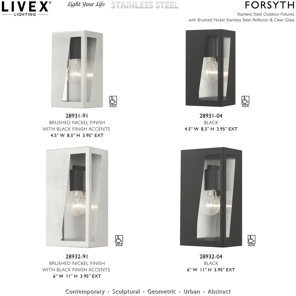 Forsyth 1 Light 8.5 Inch Brushed Nickel With Black Finish Accents Outdoor Wall Lantern, Small