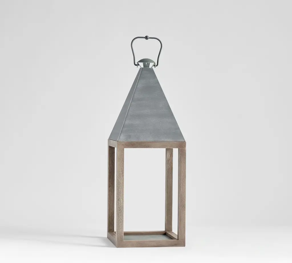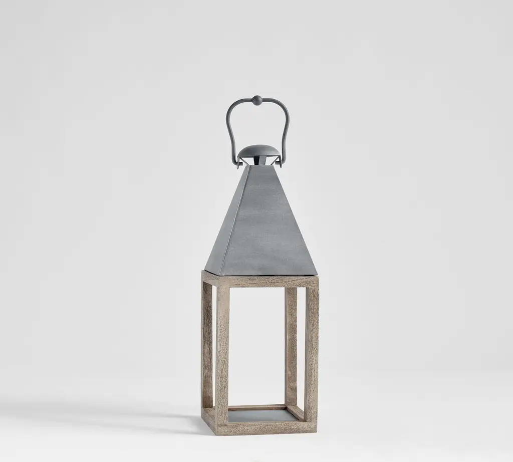 Inspired by antique English lanterns, our take features a streamlined silhouette and a modern mix of materials. Crafted of acacia and topped with weathered zinc, it’s rustic on top and refined on the bottom. We love grouping different sizes for a glowing styling moment on a walkway or evening table.