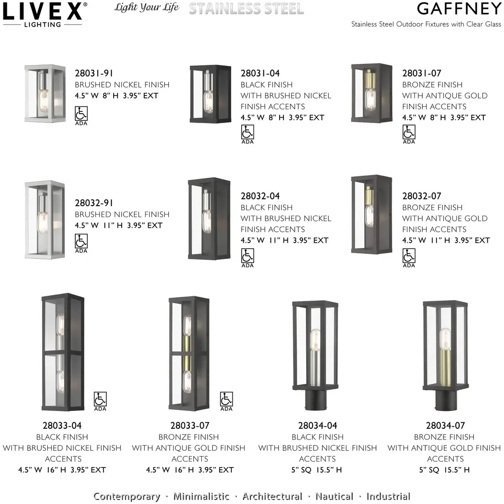 Gaffney 1 Light 8 Inch Brushed Nickel Outdoor Wall Lantern, Small