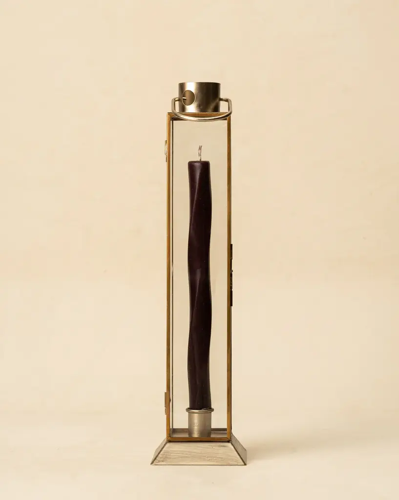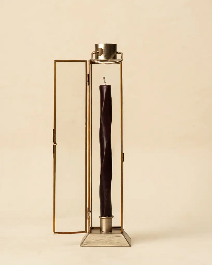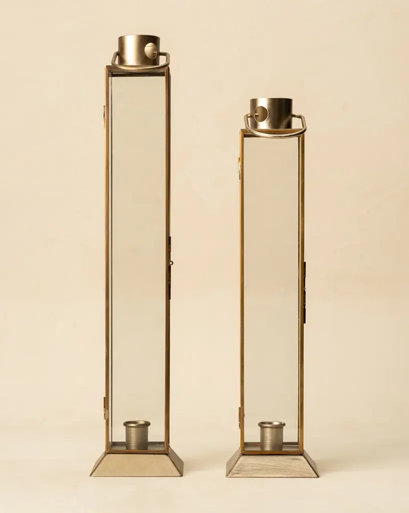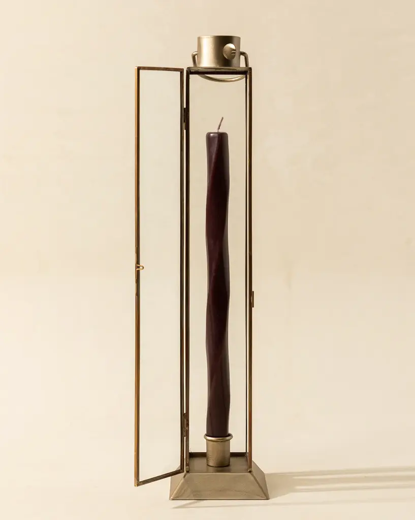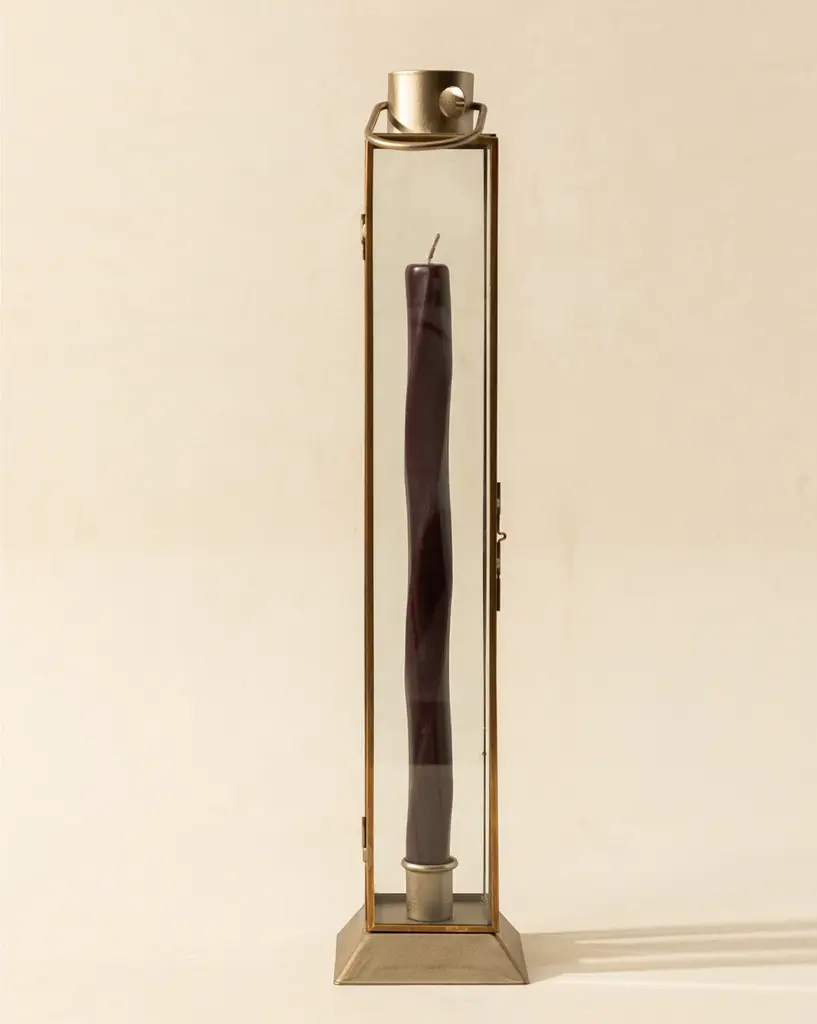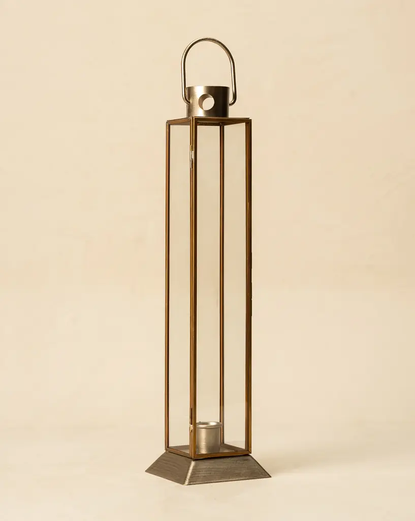 Refined and architectural, our Glass & Metal Lantern Taper Holder brings sculptural elegance to your seasonal styling. Framed in warm-toned metal with clear glass panels, it beautifully showcases taper candles while casting a soft, ambient glowperfect for mantels, consoles, or festive centerpieces.
