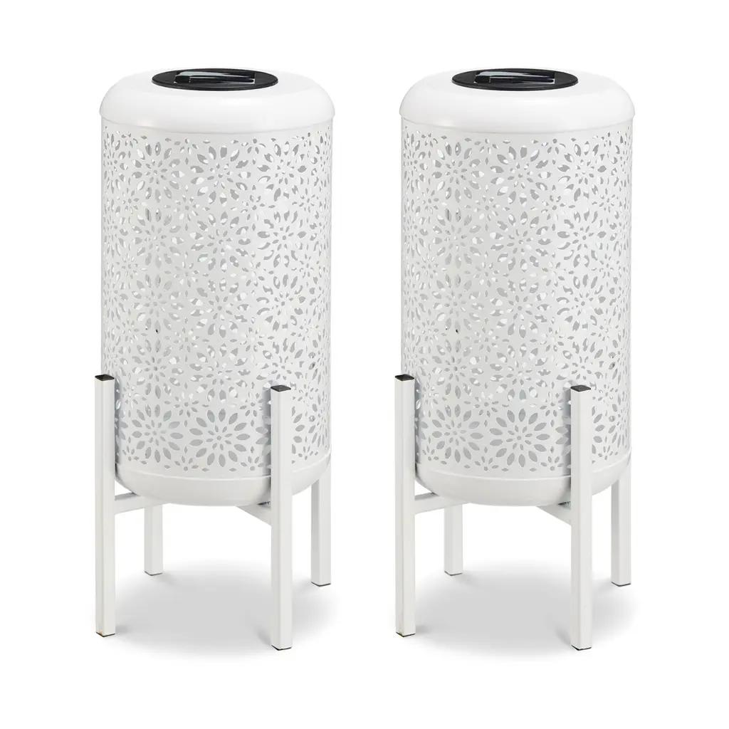 Glitzhome 14.25"h Outdoor Metal Cutout Flower Solar Light Standing Lanterns Waterproof - 2Pcs White Flower
