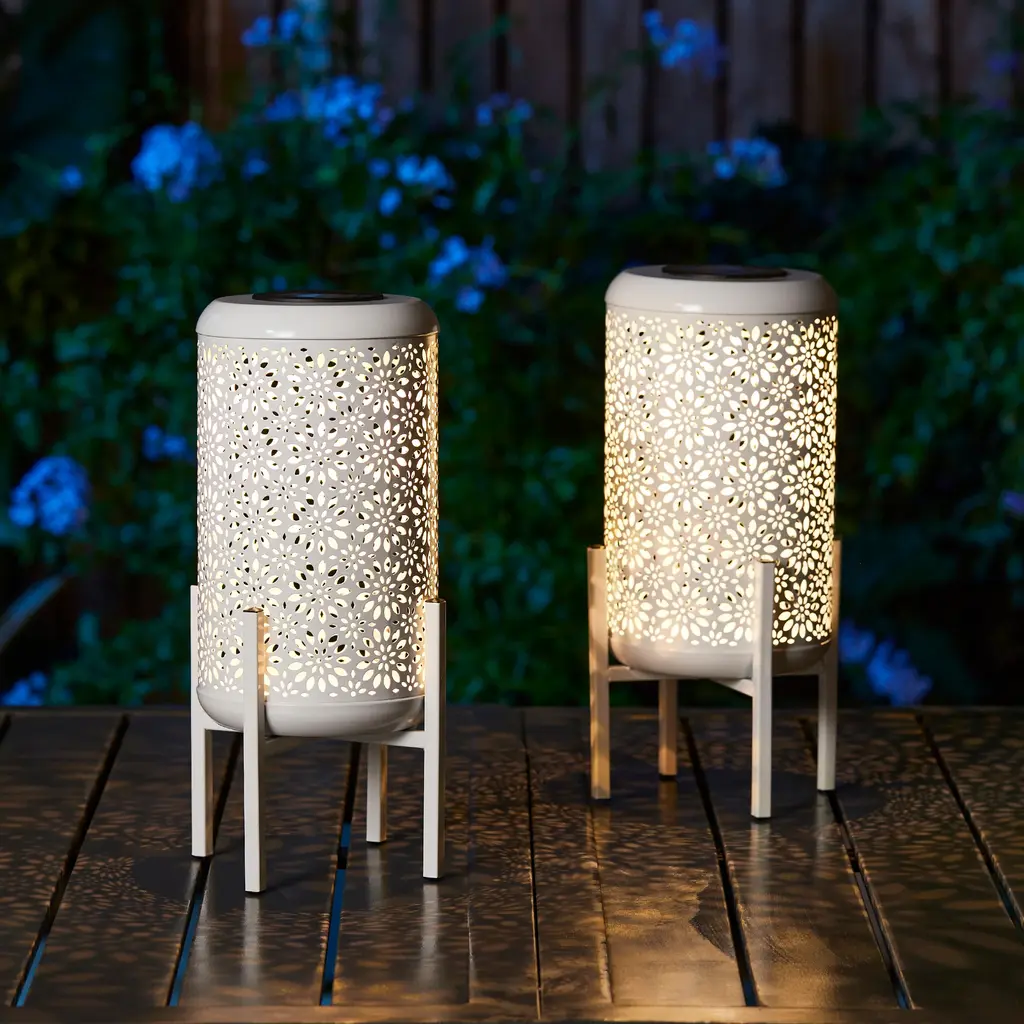 Transform your garden, patio or yard to be a bright, charming and delightful environment with this stylish Boho-style solar lantern. It features delicate cutout leaf/flower patterns and warm white LED light that casts intriguing lights and shadows, adding artistic beauty and visual interest to your space. Crafted from durable, weather-resistant powder-coated metal and plastic, it's ideal for year-round use. This eye-catching and convenient solar light is a great addition to your dining table, cocktail time, or yard games! Features:Notes: Solar Charging Time: When fully charged (the solar panel receives at least 8 hours of direct light), the battery can run for 8-10 hours. Shaded locations will reduce the battery charge and shorten the illumination time at night. Brand Profile Glitzhome is a US registered trademark based on Texas USA. We are the professional designer and crafter of home decor products with more than 10 years' experience. Hope you could find your favorite items to add some fresh elements to your home.