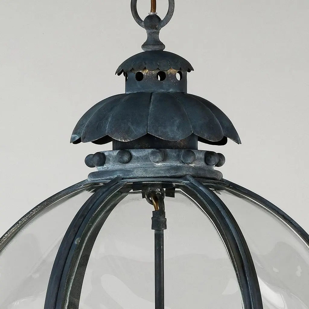 The Globe Lantern is based on a similar 19th-century antique. The globe shape of the fixture emanates strength and is united by the solid zinc finish finials and acanthus top.The lantern is hand-fabricated from bronzed brass and curved glass panels. The lantern is designed for internal use and is often selected for passageways or hallways.The decorative details are formed in bronzed brass and the top is decorated with foliage beneath a petal-shaped smoke cap and a beaded collar.Dimensions: 18" W x 18" D x 24" H.Available in a zinc, bronzed or nickel finish.Supplied with 39” of chain.