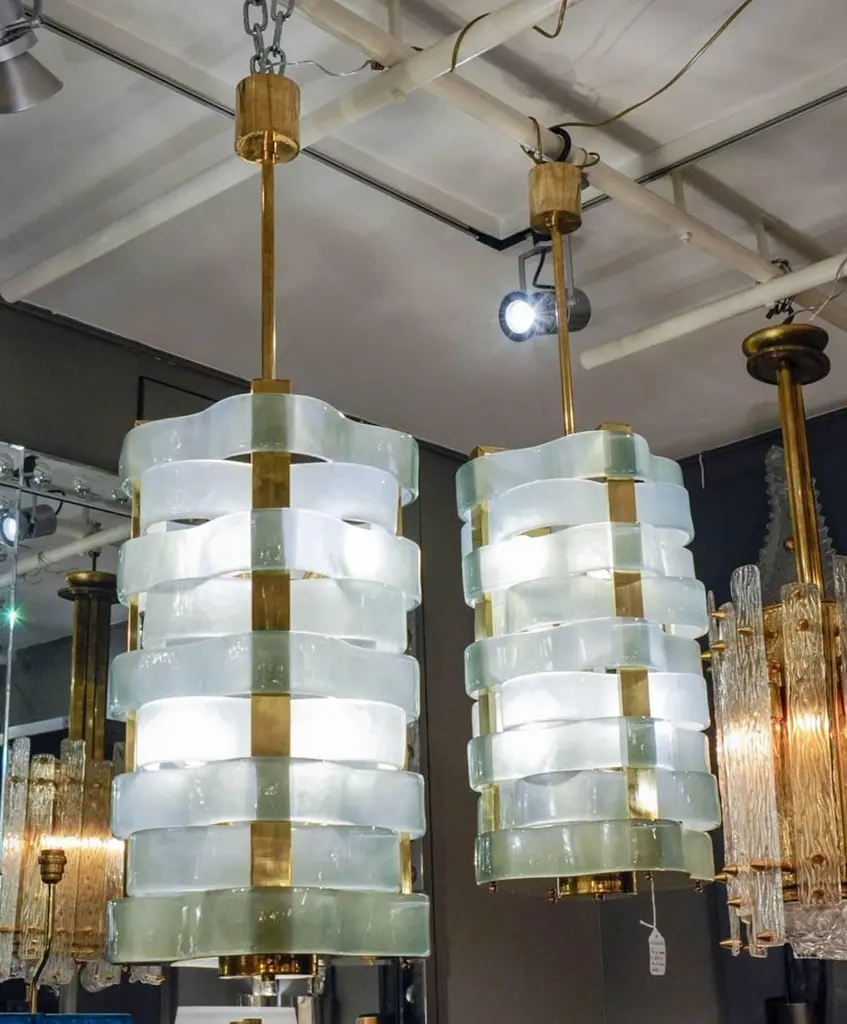 Glustin Luminaires Creation Brass Lanterns With Murano Ribbons