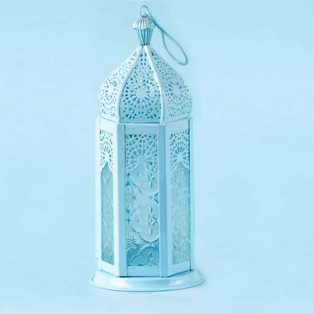 Add a serene ambiance to your home with this beautiful set of Punched Metal Candle Holders. Featuring two assorted sizes, this set is a great fit for your coastal or Bohemian style of décor. The cool teal blue tones paired with the geometric mandala cut-out design with handle accent is the perfect combination to create a stunning display. The quality metal composition is sure to last for seasons to come. Illuminate the set by adding a real wax or LED candle to each holder. Candles sold separately, the set best fits a 3-4" pillar candle.