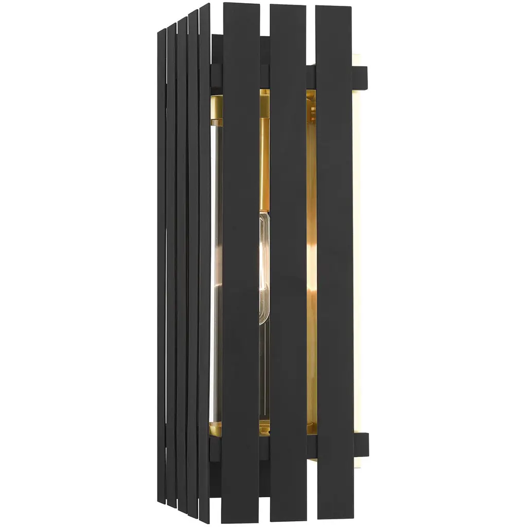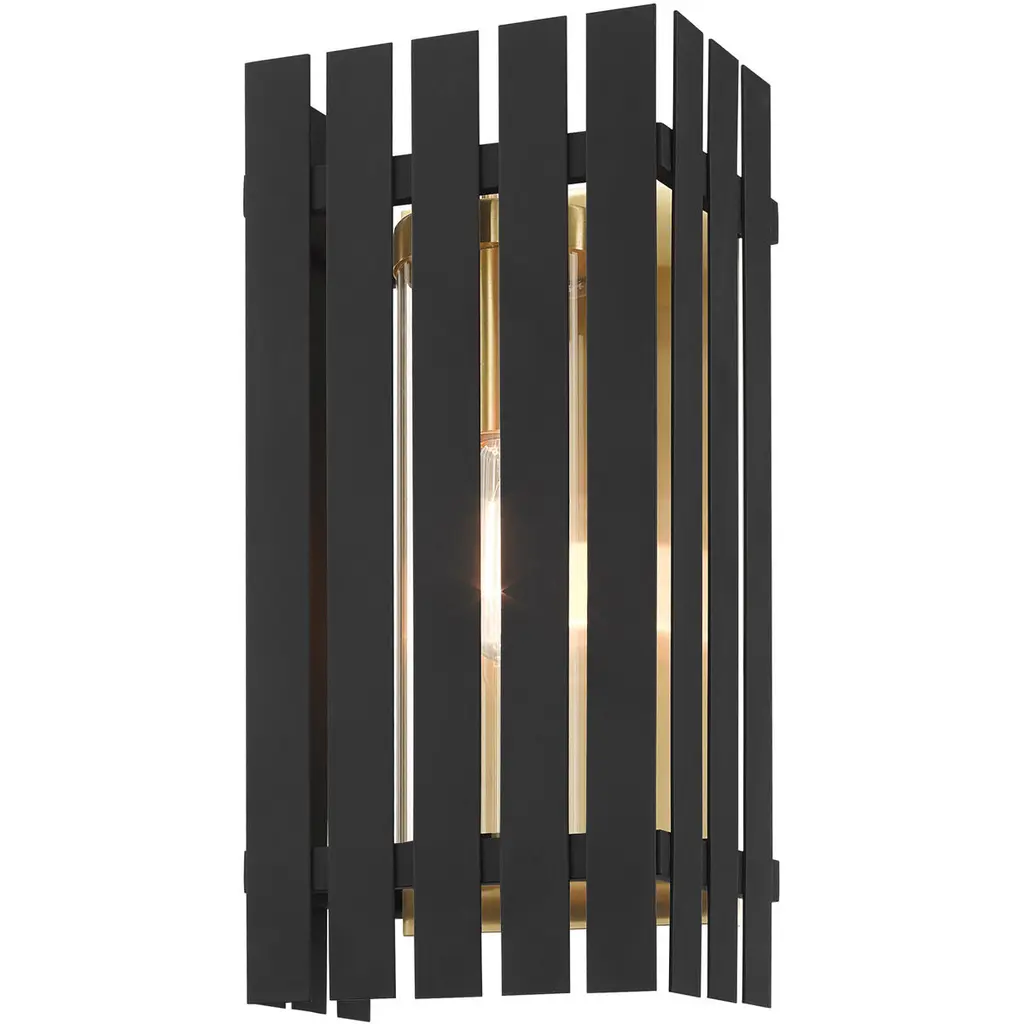 Greenwich 1 Light 17 Inch Black With Satin Brass Accents Outdoor Wall Lantern