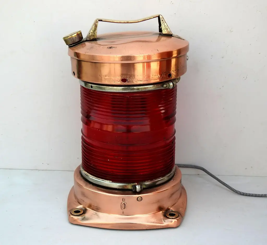 Hamburg Vintage Maritime Nautical Fanus Lantern Salvage Copper Brass Ship Lamp Electric Lamp