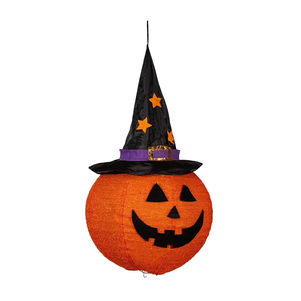 Hanging Led Fabric Witch Hat Jack O'lantern Pumpkin