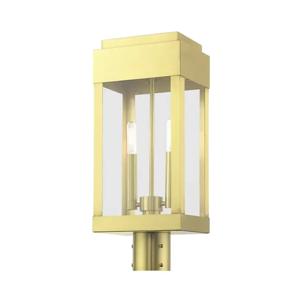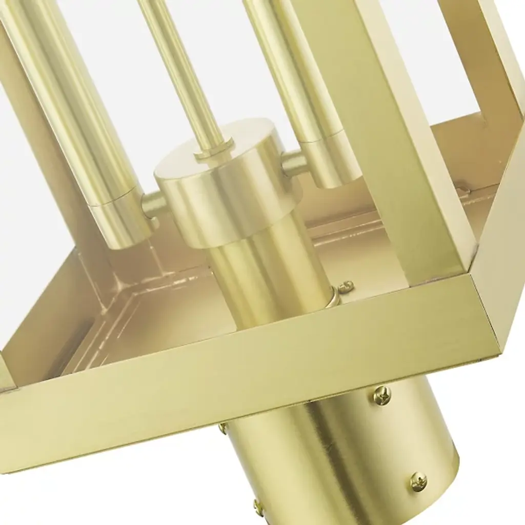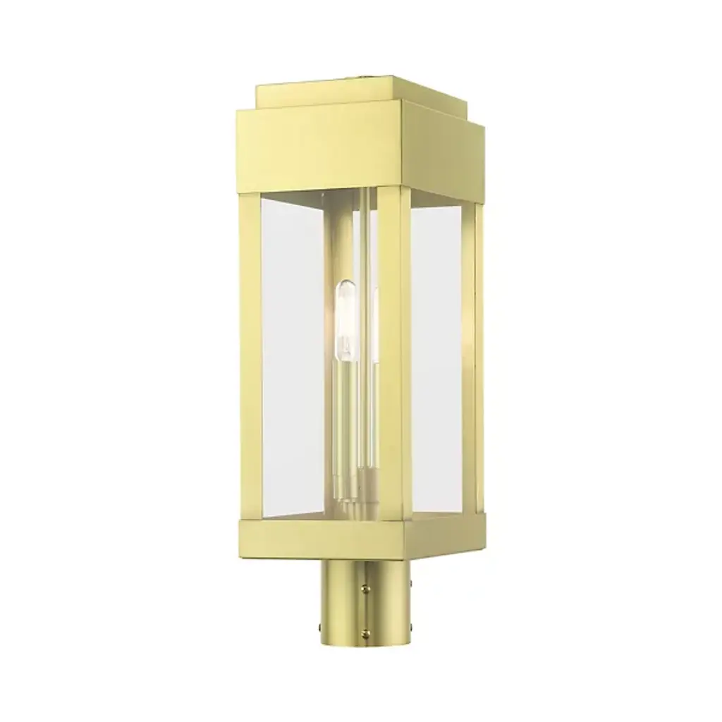The Heath Outdoor Post Lantern by Alder & Ore is a handsome addition to yards, gardens, and walkways with a clean, simple build. With a rectangular silhouette, a handcrafted, solid brass frame with a bold finish is paired with panes of glass to complete its classic, lantern-like look. The visible bulbs within shine freely through the glass, offering an even, welcoming layer of illumination to surroundings, making this post lantern a balanced mix of form and function for outdoor spaces.