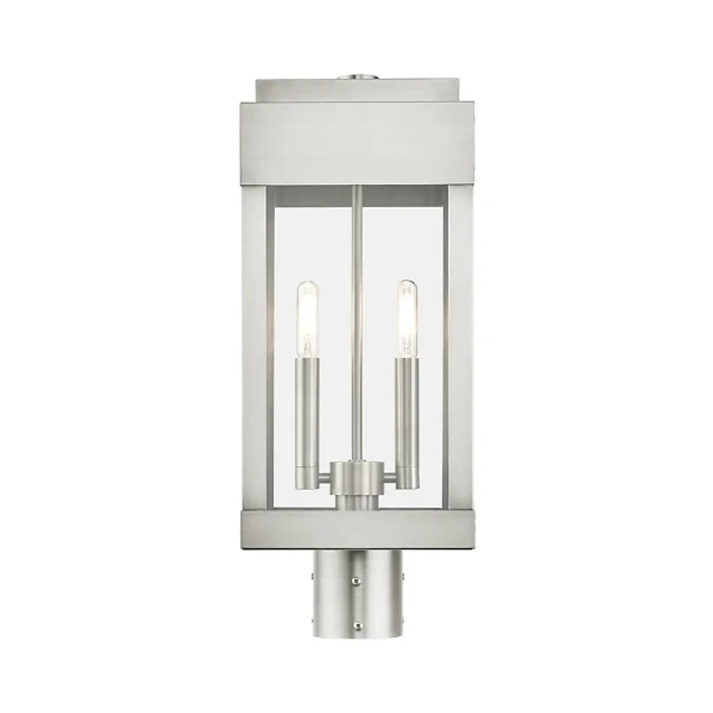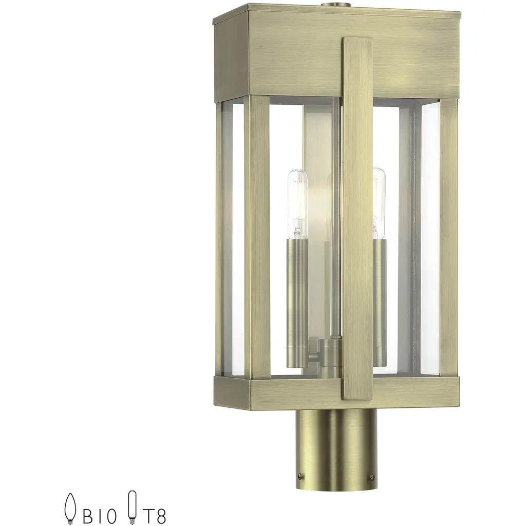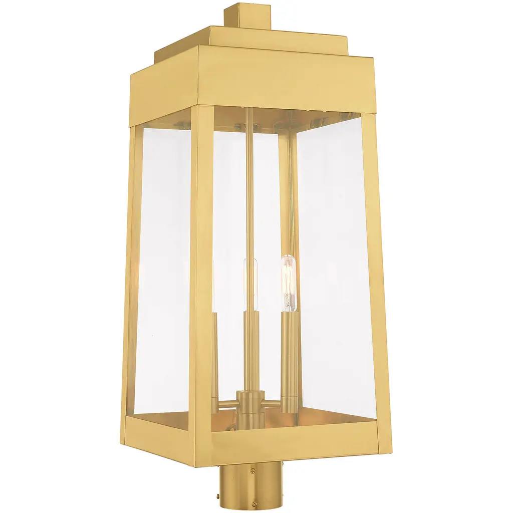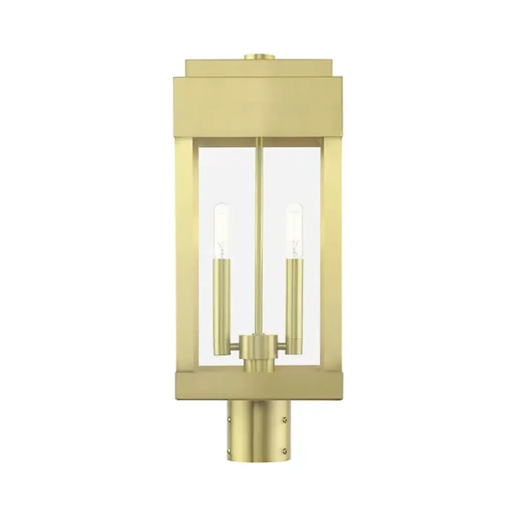 The Heath Outdoor Post Lantern by Alder & Ore is a handsome addition to yards, gardens, and walkways with a clean, simple build. With a rectangular silhouette, a handcrafted, solid brass frame with a bold finish is paired with panes of glass to complete its classic, lantern-like look. The visible bulbs within shine freely through the glass, offering an even, welcoming layer of illumination to surroundings, making this post lantern a balanced mix of form and function for outdoor spaces.