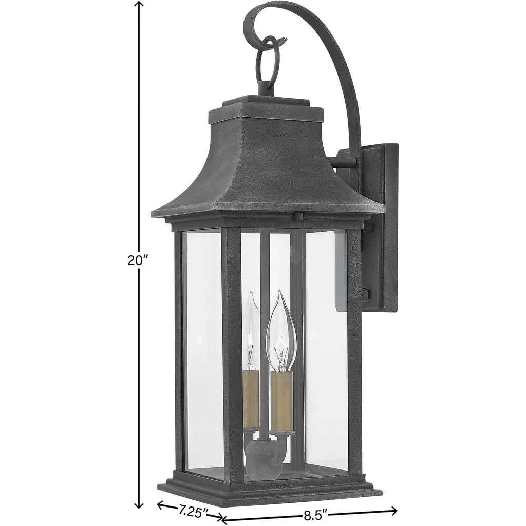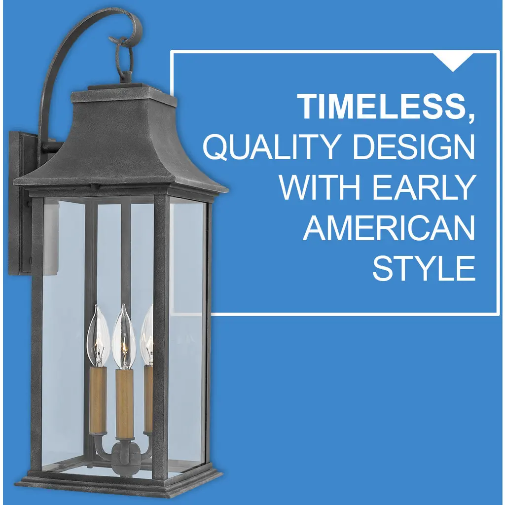 The Heritage Collection encompasses premium outdoor fixtures that pay tribute to the nostalgia of America's past while reinforcing Hinkley's philosophy of timeless, quality design. Inspired by the early American coach lights popular throughout New England, Adair features a clean and stately form composed of hardy aluminum. An Aged Zinc finish accented by either Heritage Brass or Antique Nickel candle sleeves is complemented with robust construction details.