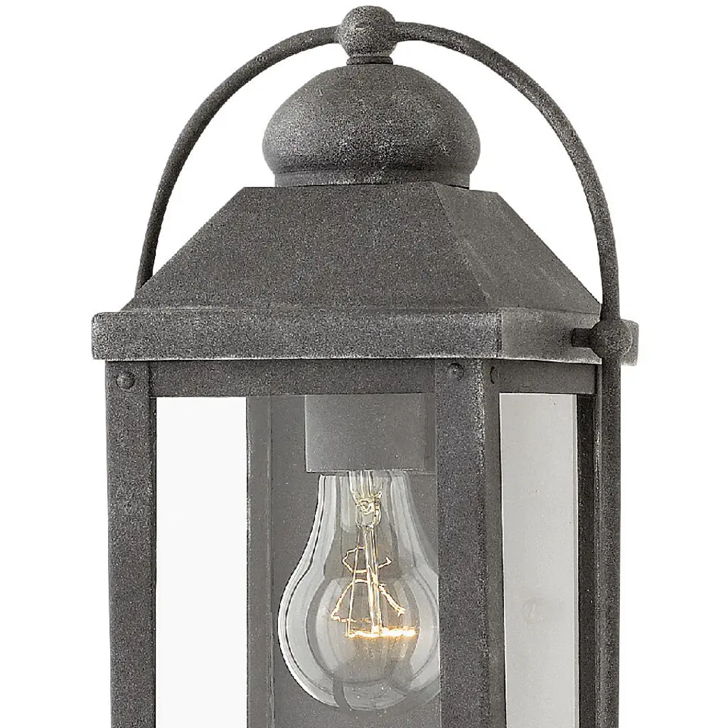 The Heritage Collection encompasses premium outdoor fixtures that pay tribute to the nostalgia of America's past while reinforcing Hinkley's philosophy of timeless, quality design. Anchorage is an early American lantern design crafted of solid aluminum to reflect a bold yet refined silhouette. The Aged Zinc finish and clear glass complement the long clean lines, elegant arched carriage handle and sturdy knobs, resulting in a vintage style with classic charisma.