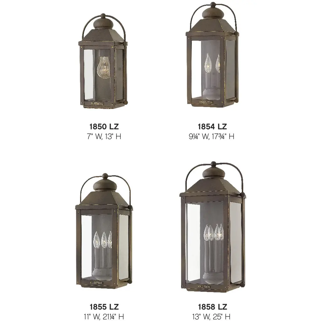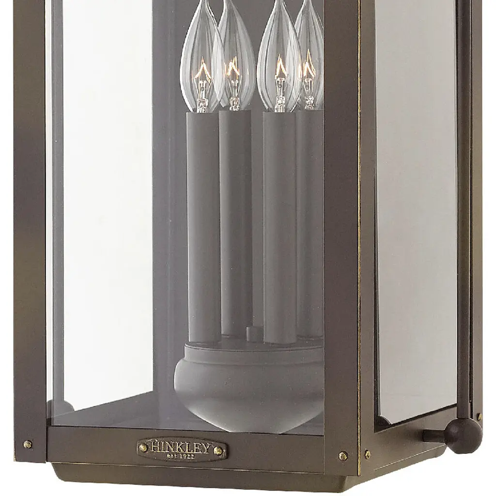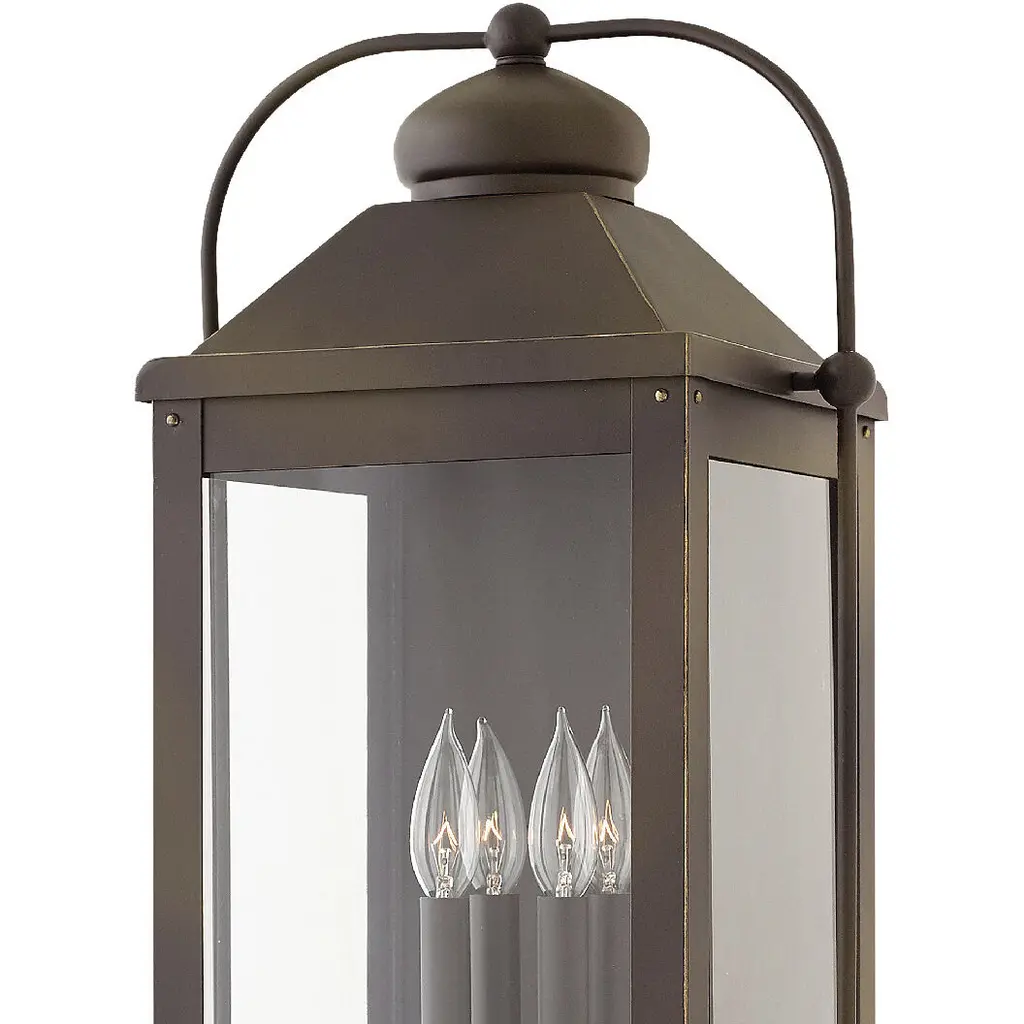 The Heritage Collection encompasses premium outdoor fixtures that pay tribute to the nostalgia of America's past while reinforcing Hinkley's philosophy of timeless, quality design. Anchorage is an early American lantern design crafted of solid aluminum to reflect a bold yet refined silhouette. The Light Oiled Bronze finish and clear glass complement the long clean lines, elegant arched carriage handle and sturdy knobs, resulting in a vintage style with classic charisma.