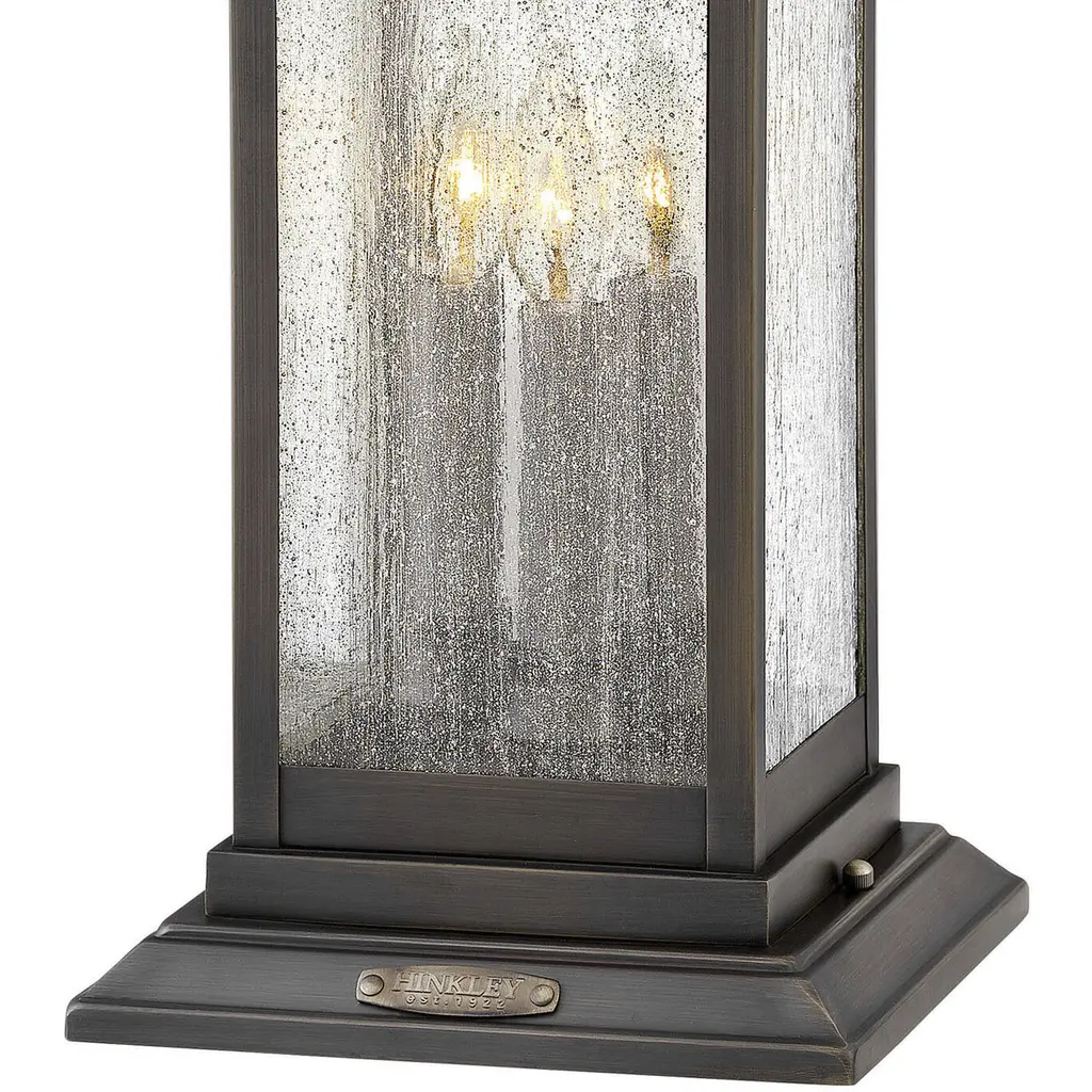 Our Estate Collections boast a breadth of fixtures defined by coordinating composition, enduring architecture, and time-honored craftsmanship, designed to meet the needs of expansive properties with extended outdoor living spaces. From the entrance of your driveway to the depths of your backyard, these collections provide cohesive design for stately exteriors. ; The Heritage Collection encompasses premium outdoor fixtures that pay tribute to the nostalgia of America's past while reinforcing Hinkley's philosophy of timeless, quality design. Revere is a traditional coach lantern in solid brass with clear seedy glass panels. The glass, faux candle sleeves and classic candelabra bulbing complete the authentic appearance.